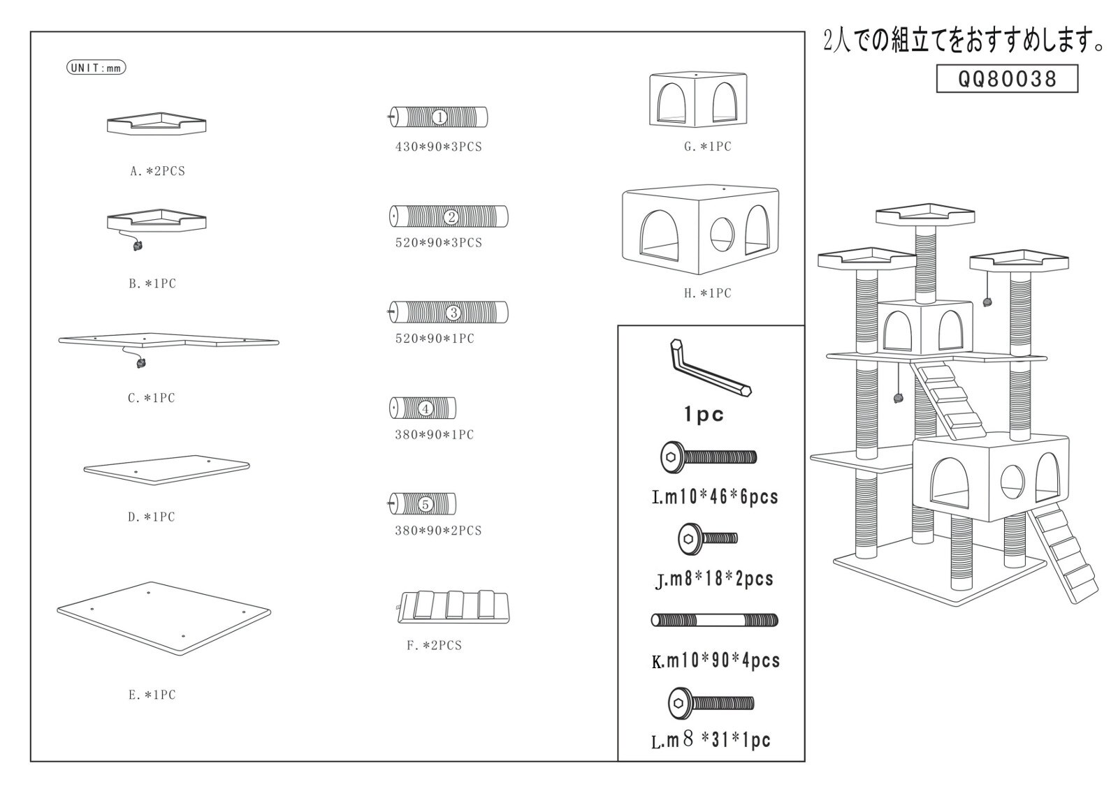 4匹まで耐えられるので、多頭飼いの方にもお使いいただけます。猫が大好きな小さなねずみのおもちゃが2個付いています。