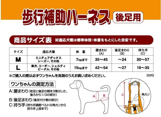 足腰の筋力が低下したシニア犬の歩行補助に最適な、後足用歩行補助ハーネスです。