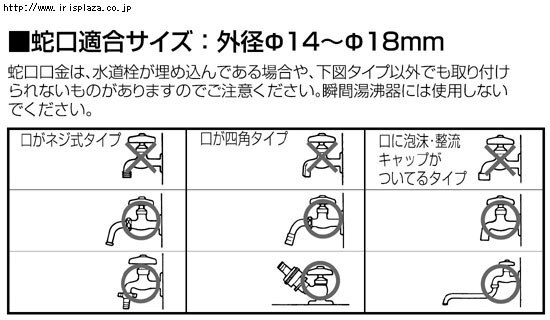 ※付属の蛇口口金は下記のタイプの蛇口にはご利用できません。