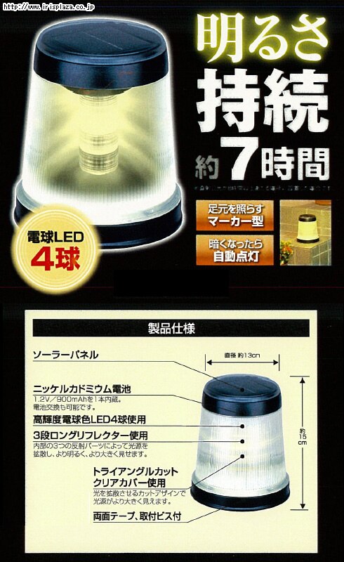 3段ロングリフレクターを使用していますので、明るさに優れているソーラーライトです。