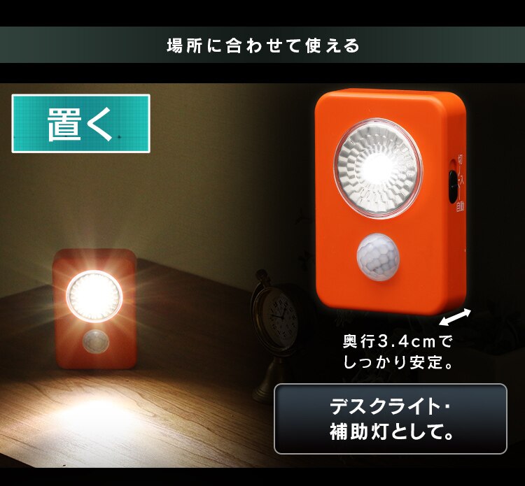 人の動きを感知して自動的に点灯する人感センサー付の乾電池式LED屋内センサーライトハンディタイプです。