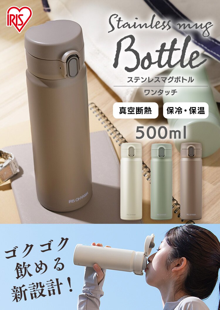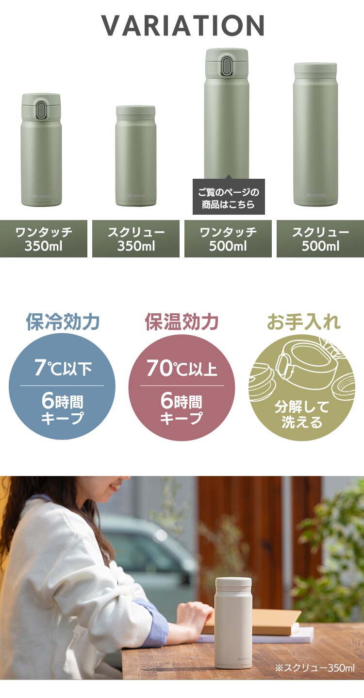 - 水筒 500ml マグボトル スクリュー ステンレス 保冷 保温 マイボトル SM-S500 ペールグリーン