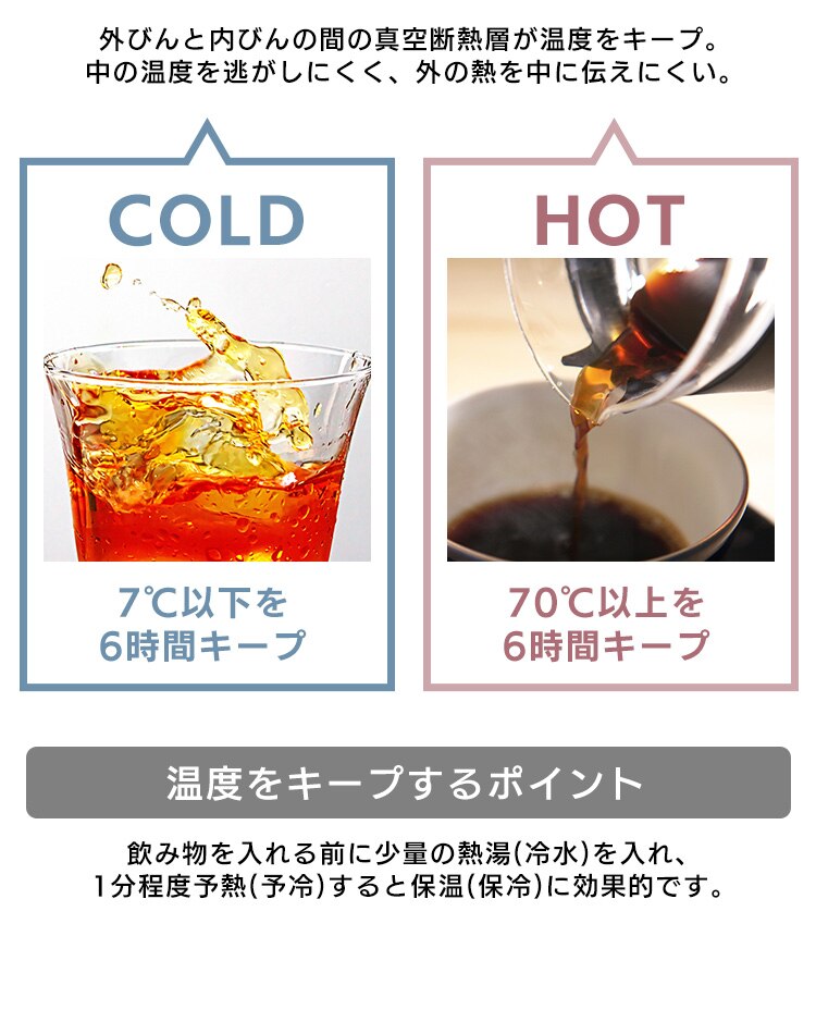 真空断熱層がおいしい温度をキープします。