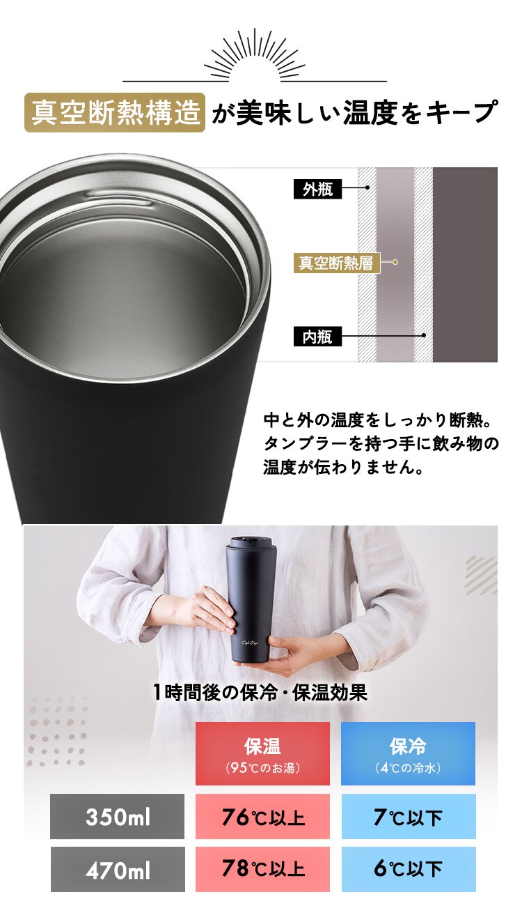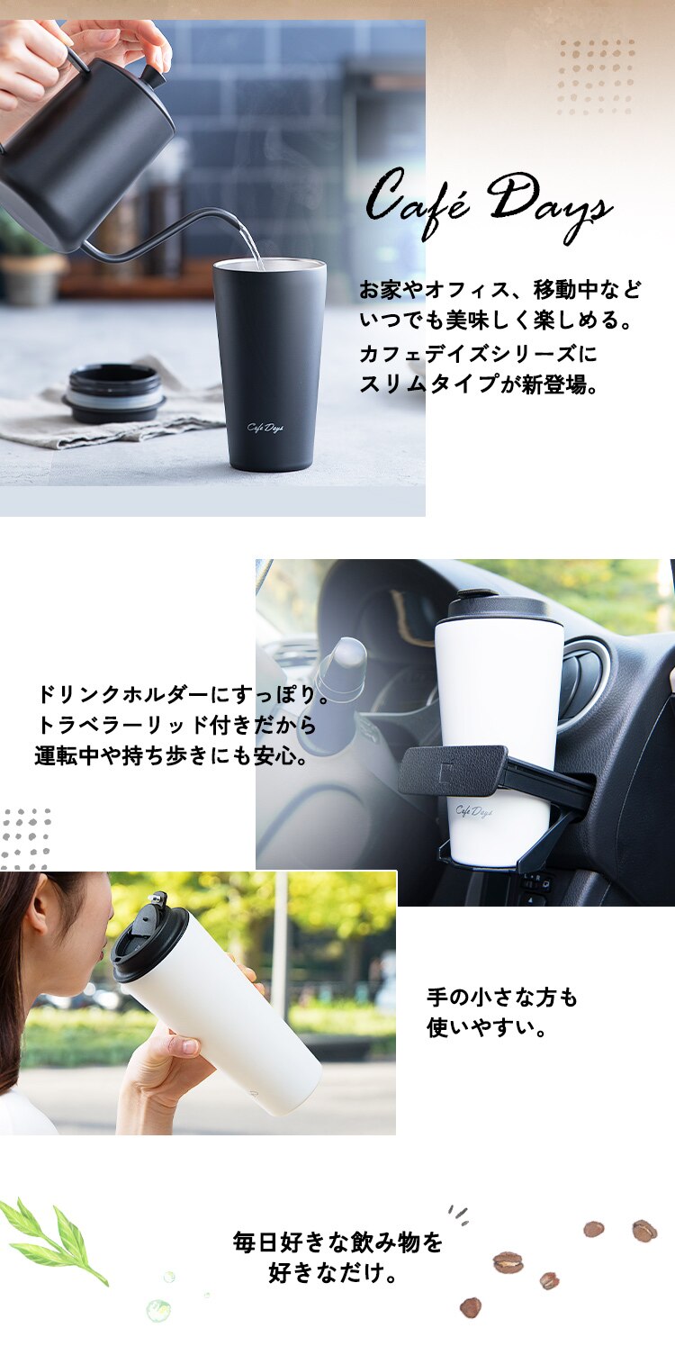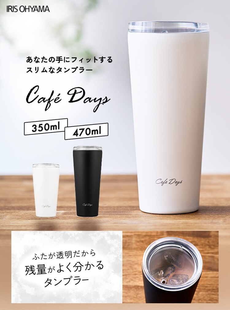 タンブラー 470ml 蓋つき ステンレス 保冷 保温 トラベラーリッド マイボトル Cafe Days NCD-TLT470 ブラック