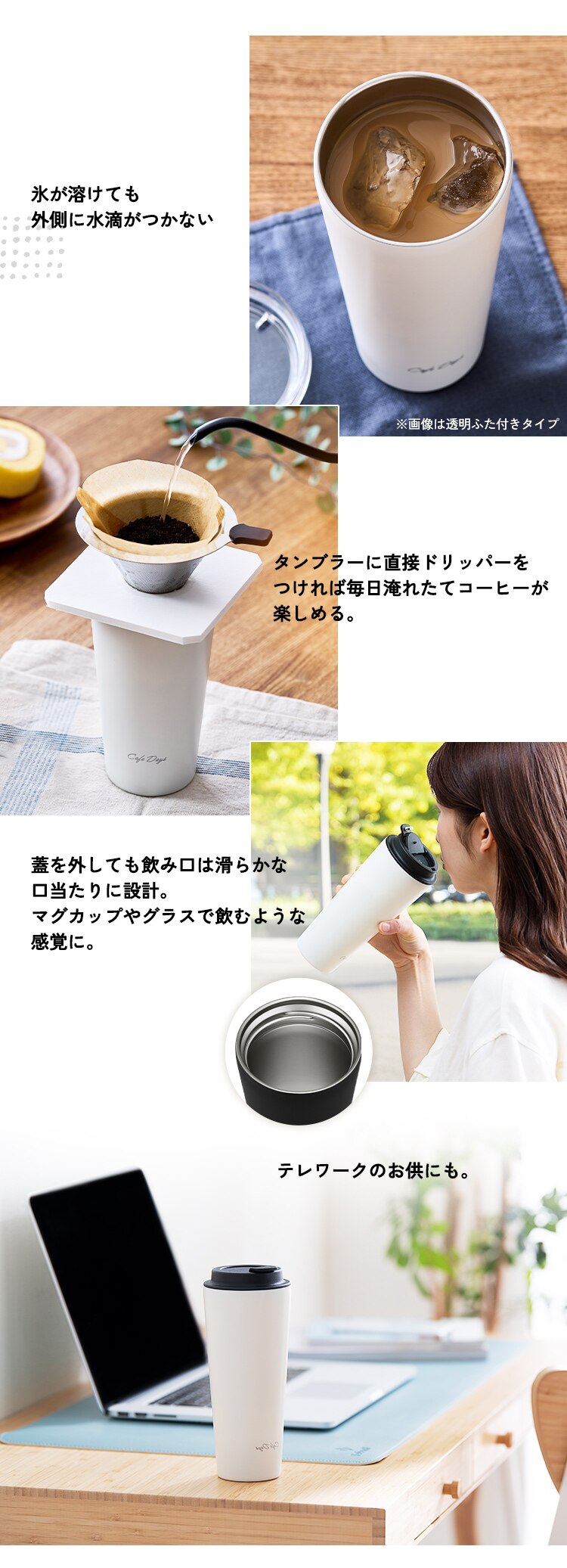 タンブラーに直接ドリッパーをつければ毎日淹れたてコーヒーが楽しめます。
