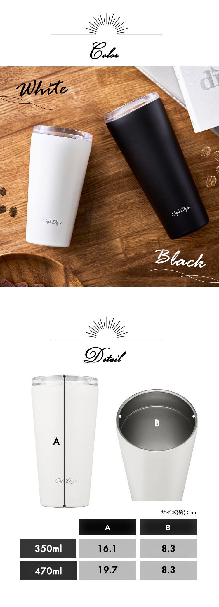 - タンブラー 470ml 蓋つき ステンレス 保冷 保温 トラベラーリッド マイボトル Cafe Days NCD-TLT470 ブラック