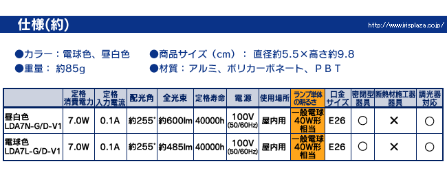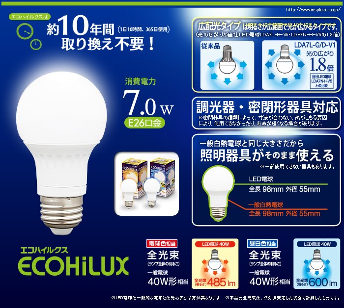 ※1,光の広がり…アイリスオーヤマLED電球LDA7L-H-V5・LDA7N-H-V5の約1.8倍