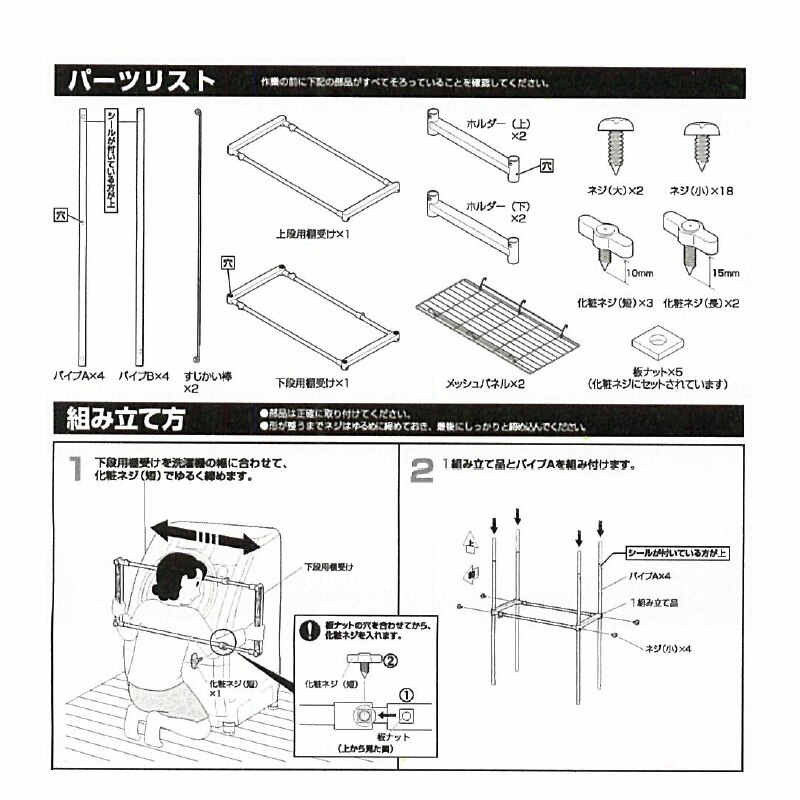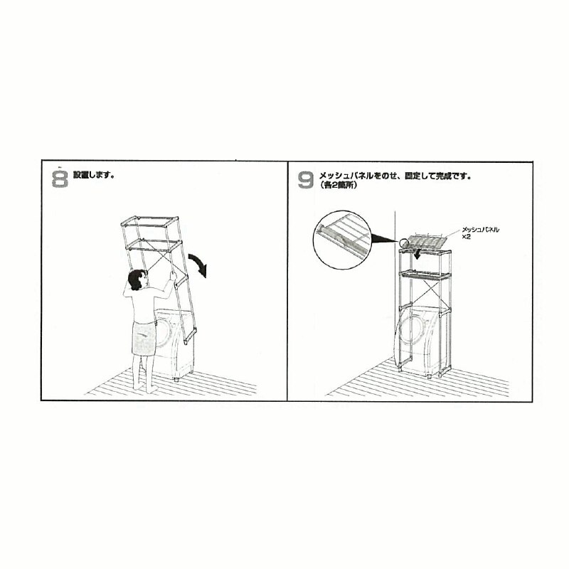 - 以前に同じ商品を購入しており、リピ買いです。棚に置くカゴの大きさに合わせて幅を調節しています。今回は、ランドリールームではありますが、洗濯機も何も無い場所にポンと置いただけだからか、伸縮棚の長さの調節が上手くいってないのか、以前のものよりも安定が悪く(すぐに倒れるような感じではありませんが)、大きな地震が来たら倒れるかも...。