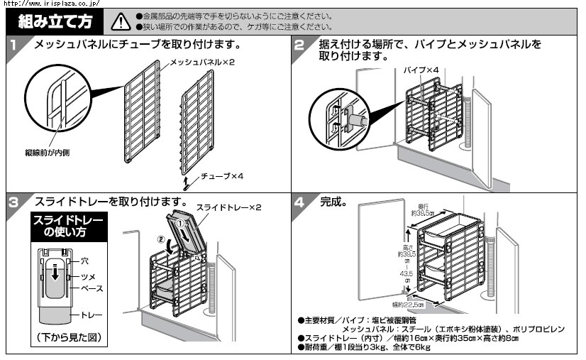 ●耐荷重:全体6kg、棚1段あたり3kg