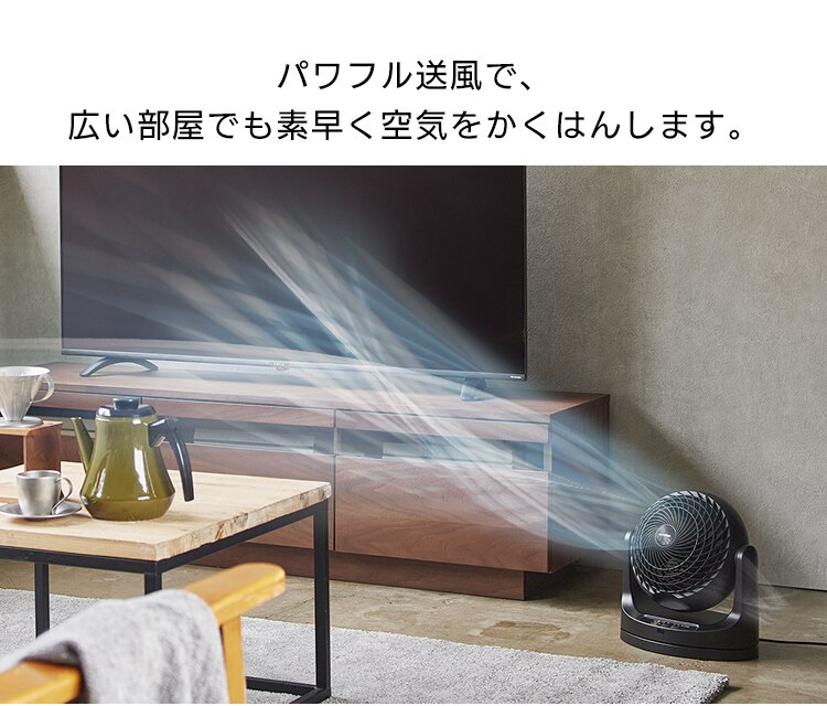 パワフル送風で、広い部屋でも素早く空気をかくはんします。