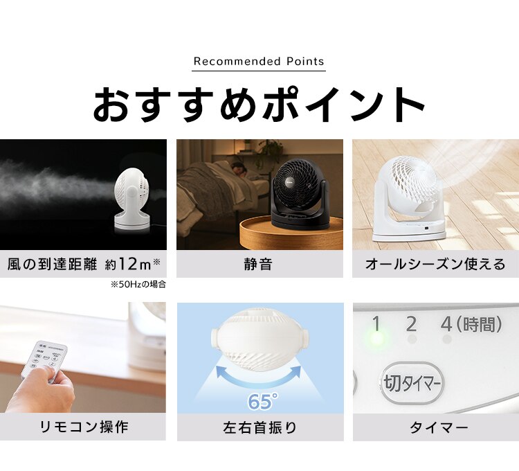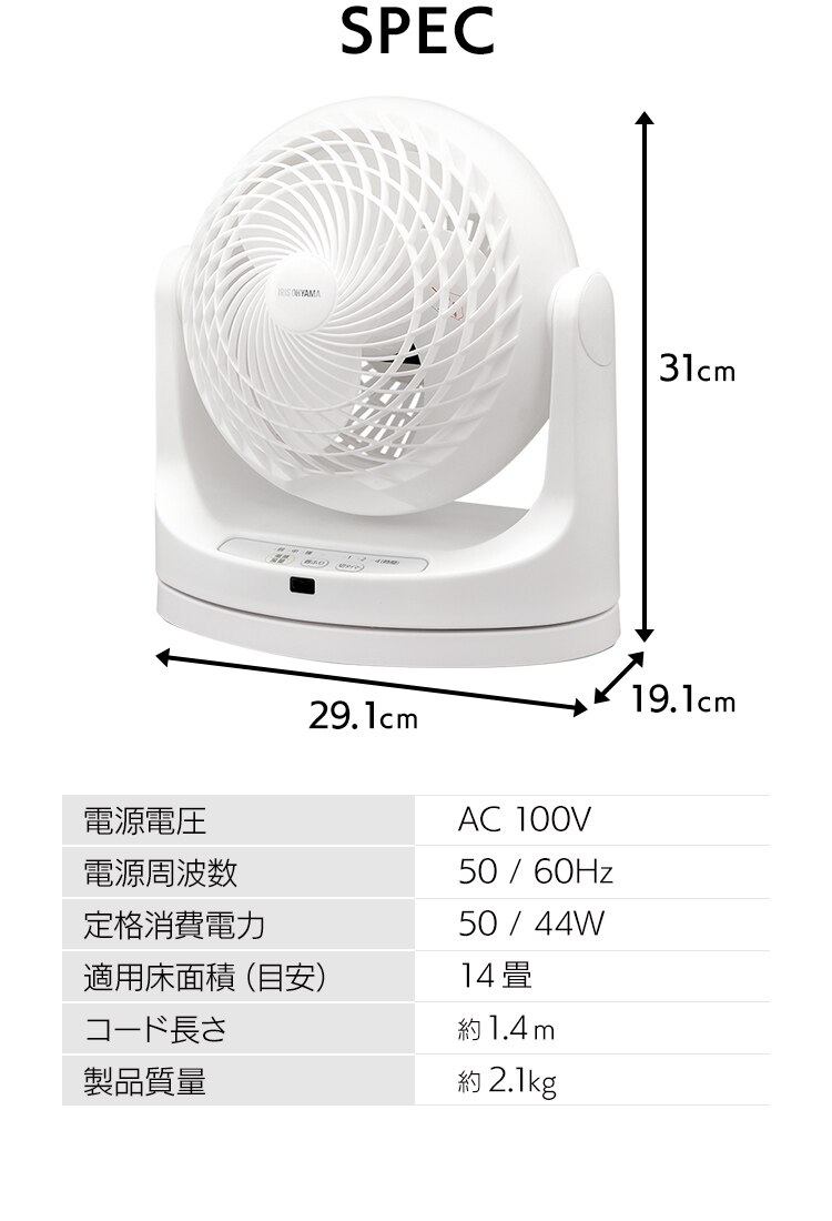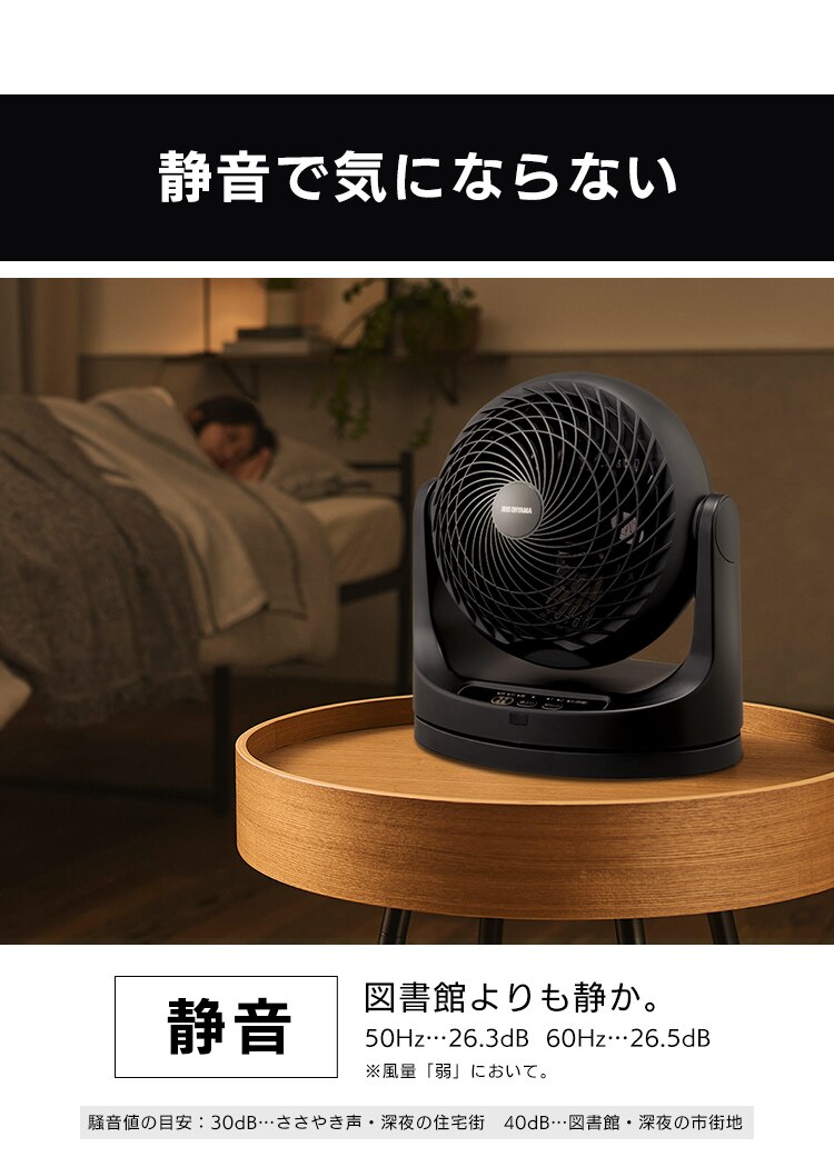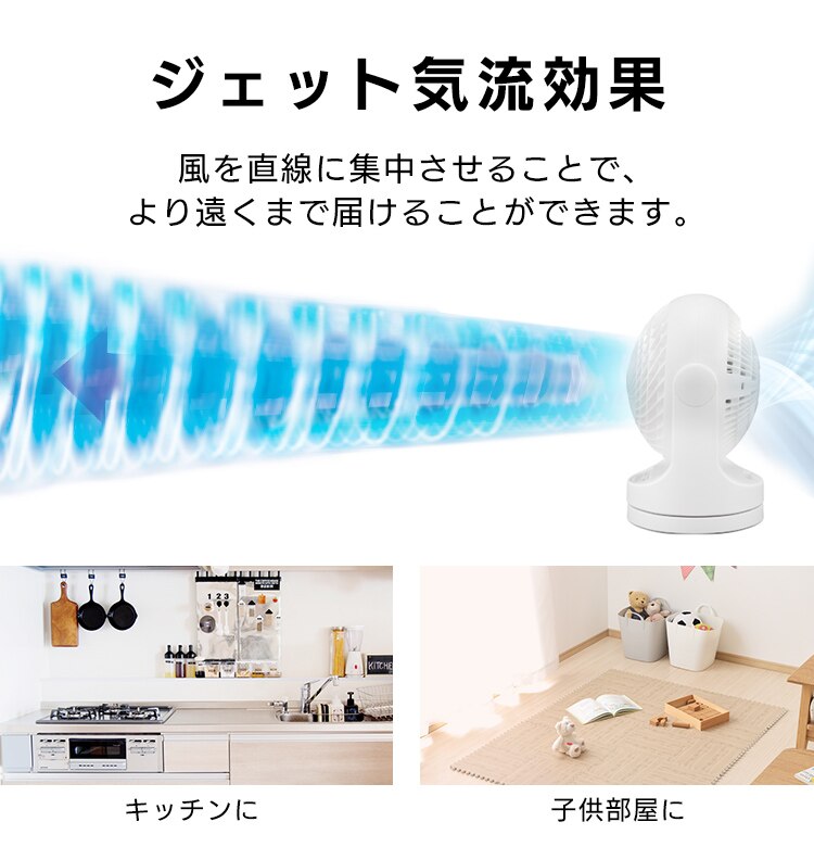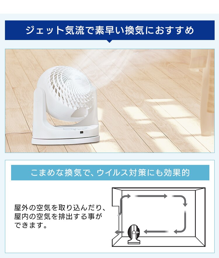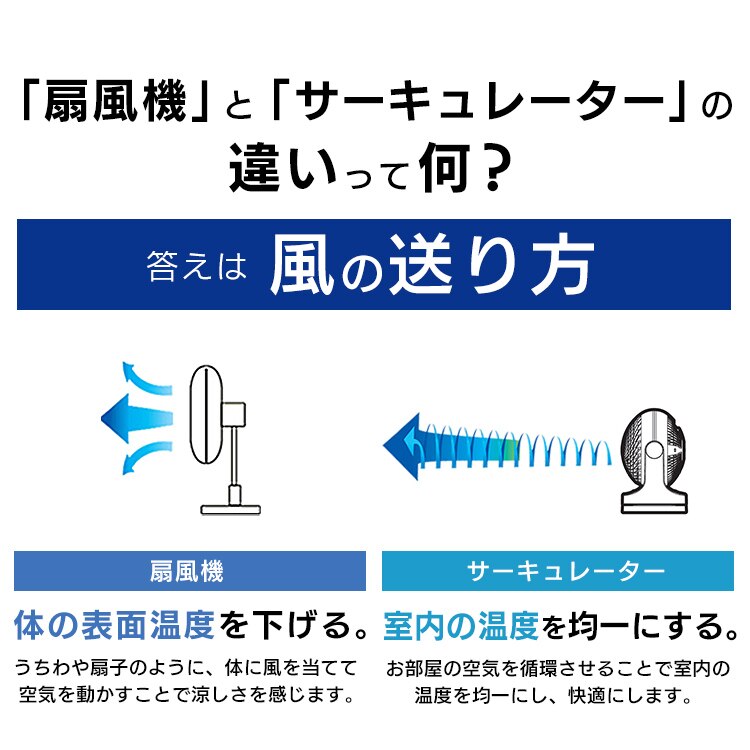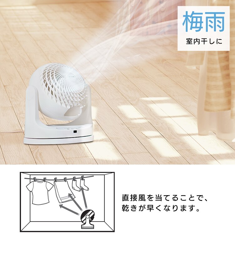 エアコンと併用して夏は冷気を部屋全体へ、冬は暖かい空気を足元へ循環し一年中使えます。