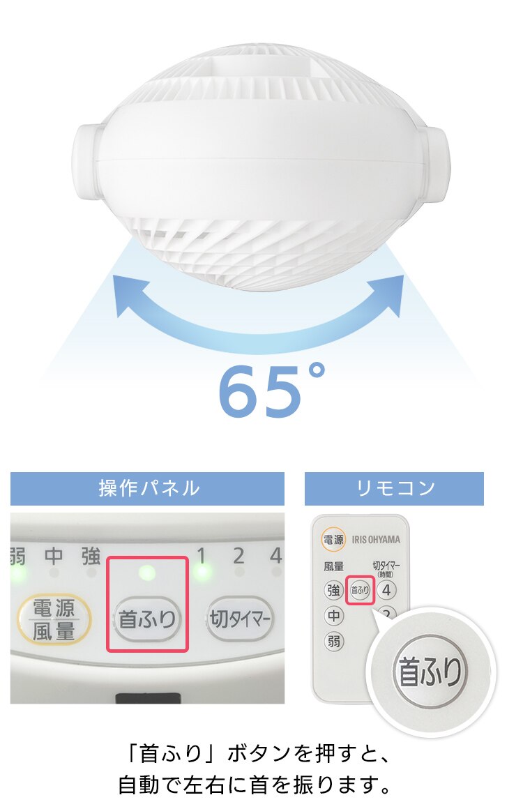 「首ふり」ボタンを押すと、自動で左右に首を振ります。