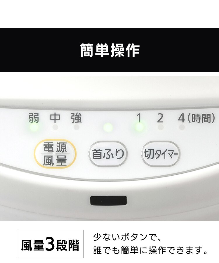 - 強にしても音が静かです。風量の調整は弱中強と3段階あり、首振り機能とタイマー設定があります。見た目のコロンとした可愛さに購入しましたが操作もわかりやすく強にしても音が静かなのは良いと思います!