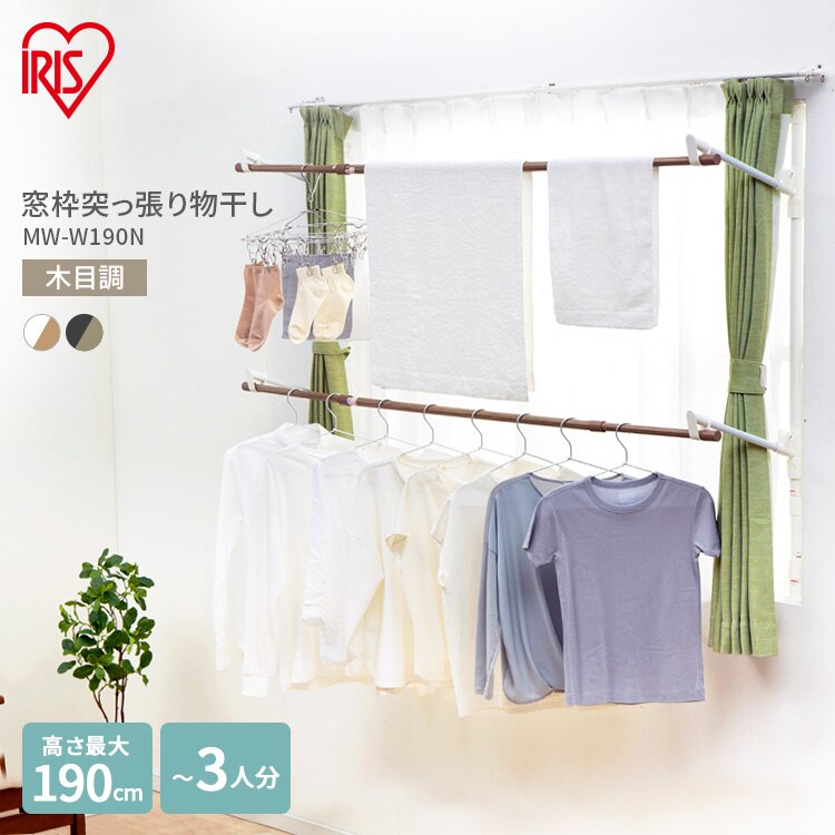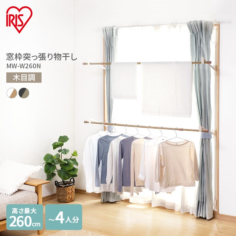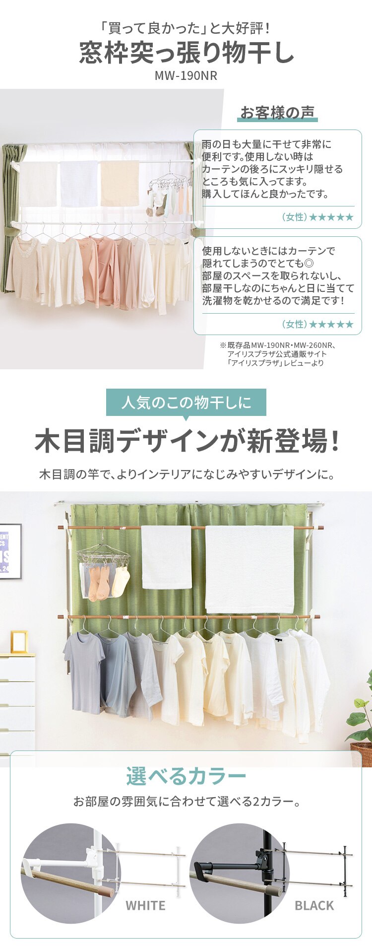 窓枠物干し 物干し 窓枠 木目調 MW-W260N ブラック【B】