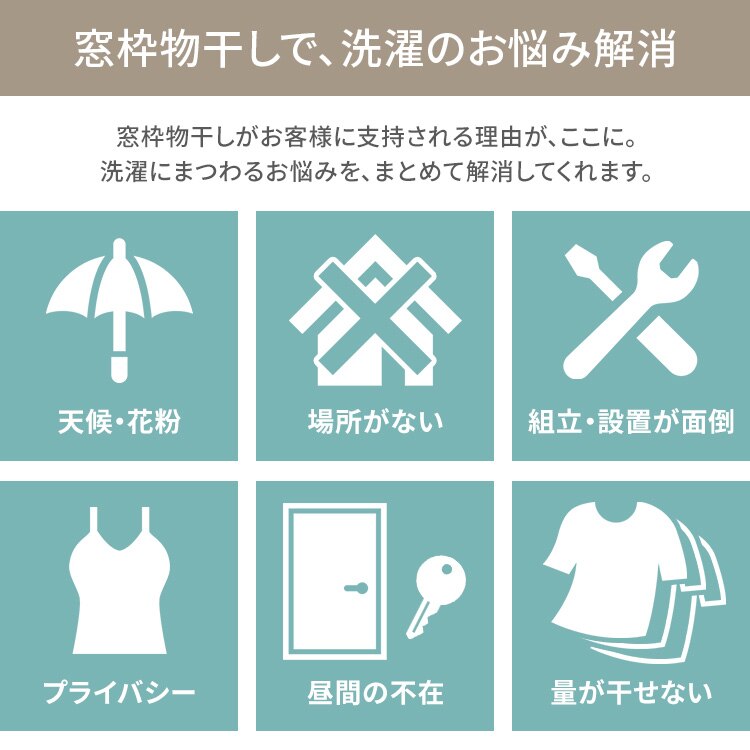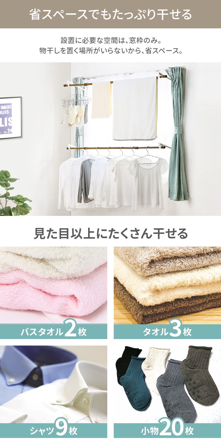 - 部屋干しなので、沢山干せて壁際や窓際など好きな場所にセットできるのでお部屋がスッキリしました。満足しています。