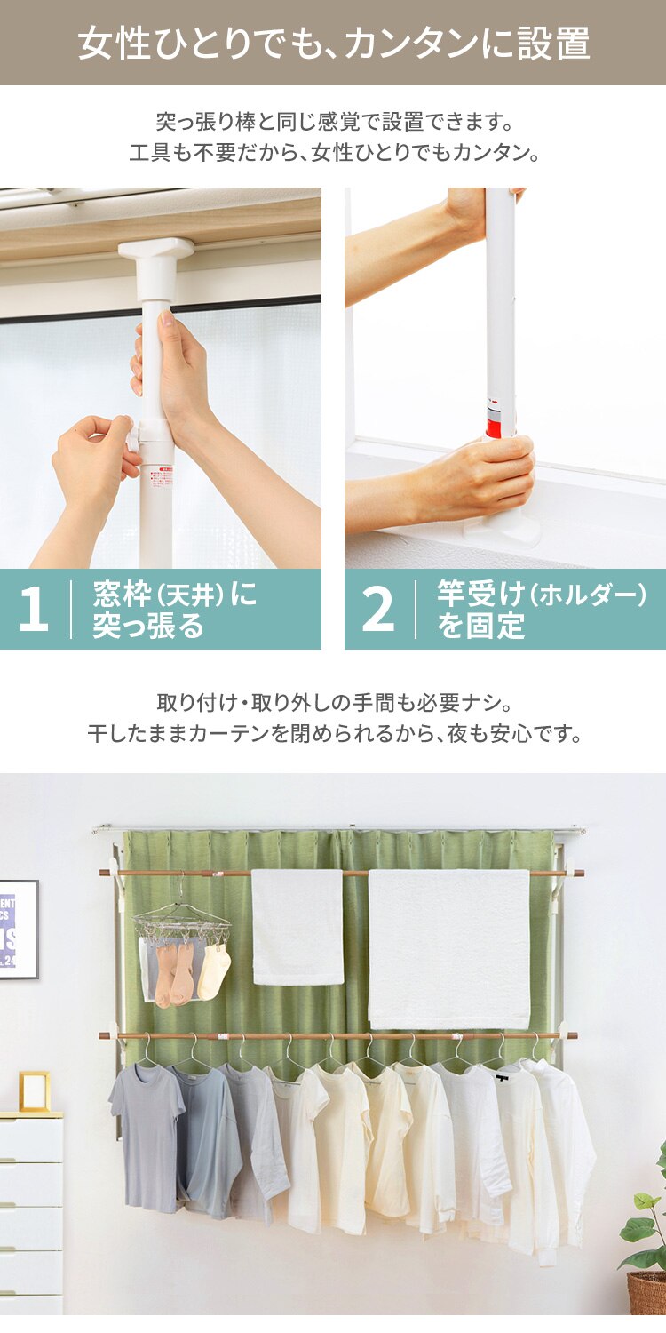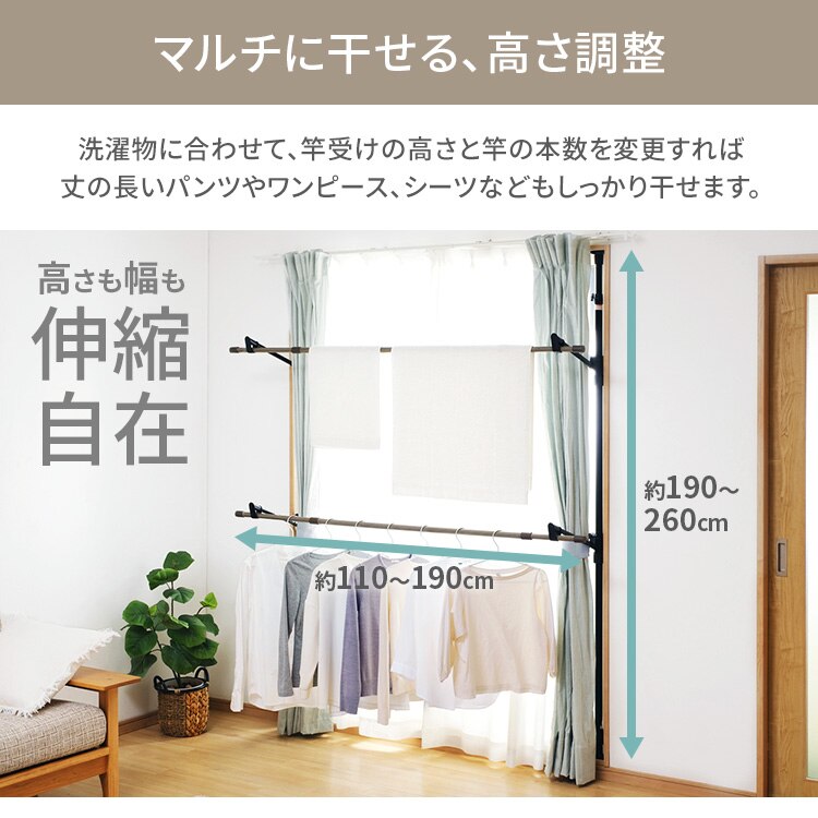 高さも幅も伸縮自在なので洗濯物や窓枠にピッタリのサイズで使えます。