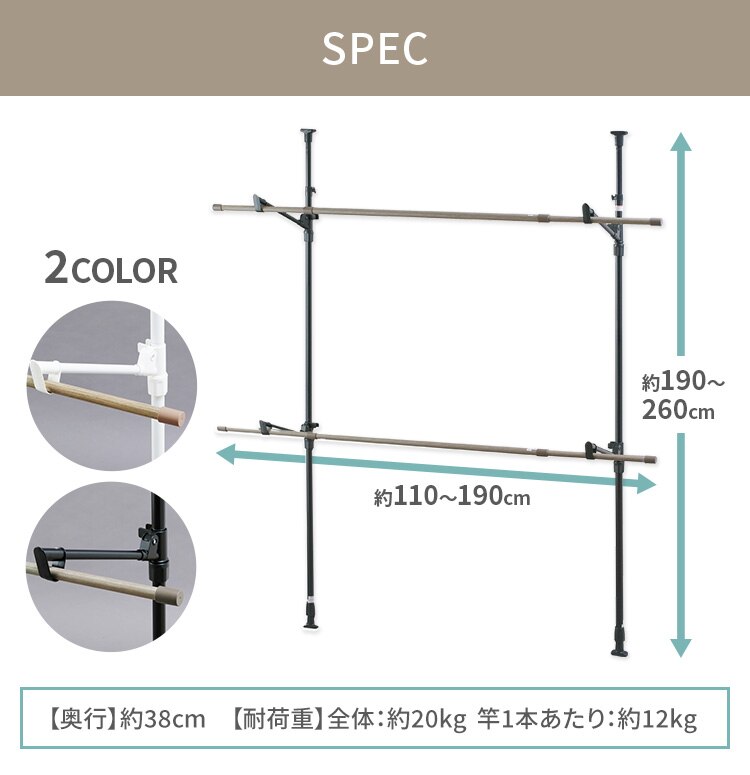 ●商品サイズ(cm):幅約110〜190×奥行約38×高さ約190〜260