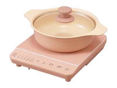 - 【セット品】 IHコンロ 1口 1000W 鍋 20cm IHKP-T39220-P ピンク