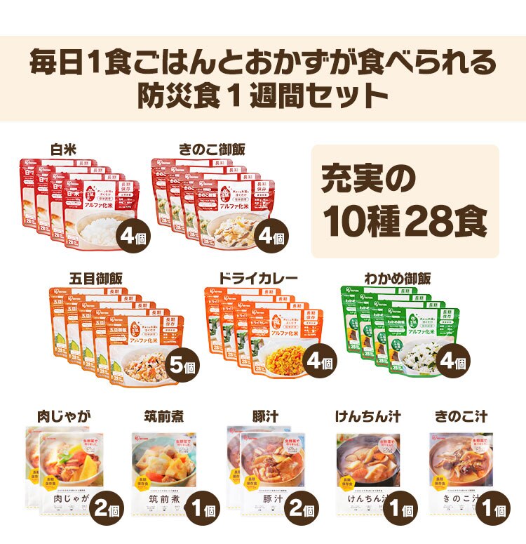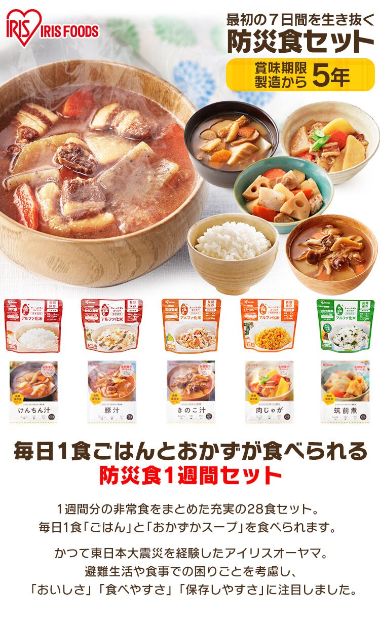 - 【5年保存の非常食 7日分セット】防災食セット ごはんおかず 10種28食