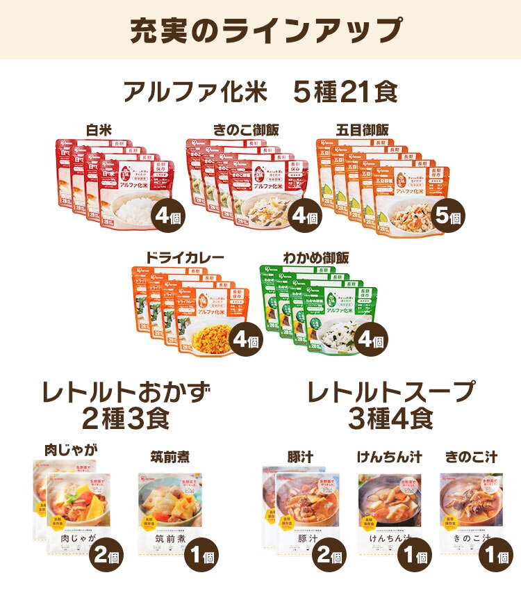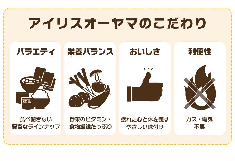 - すぐに使うものではないのでレビューは難しいですが、備えておきたくて。お味や作りやすさは、信頼できるアイリスさんの販売商品なので、大丈夫かな。