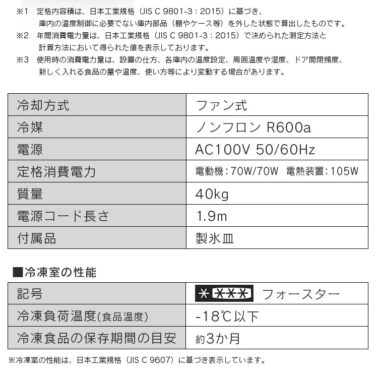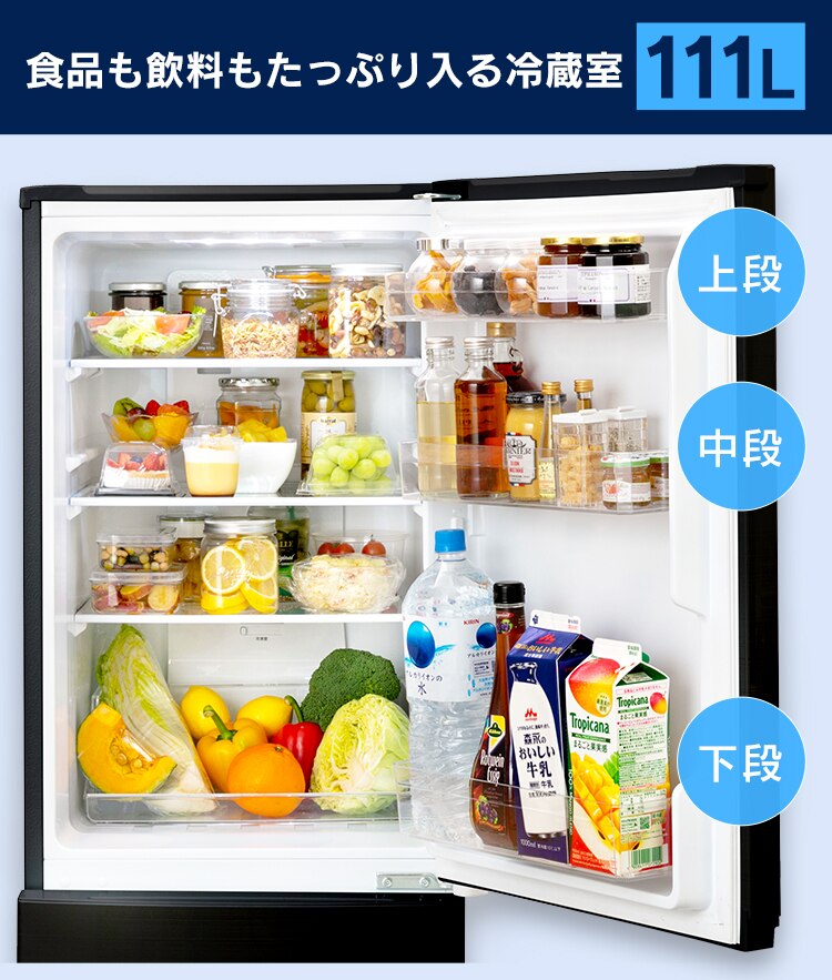 冷蔵室:111L<96L>、うちフリートレー<17L>