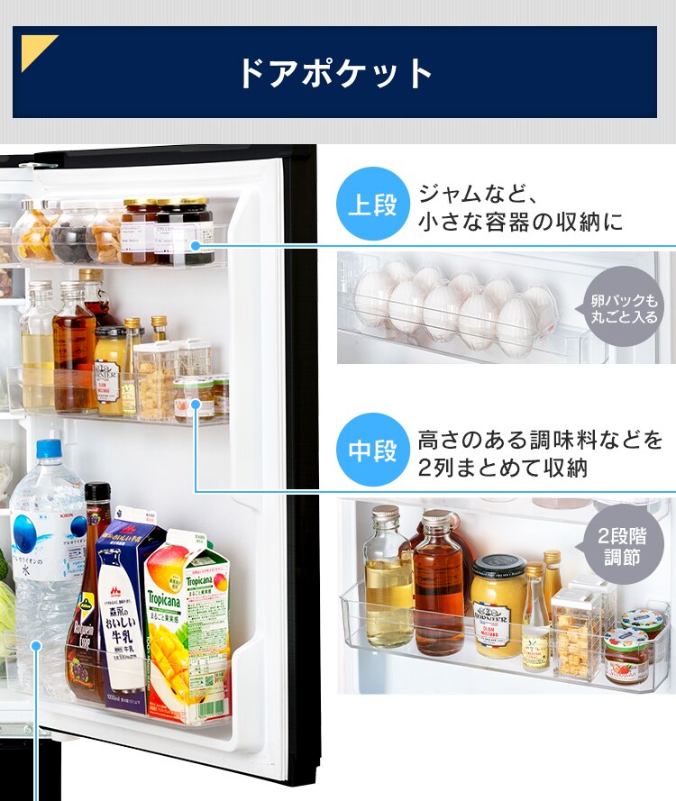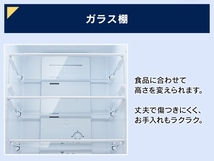 丈夫で傷つきにくいガラス棚は食品に合わせて高さを変えられます。