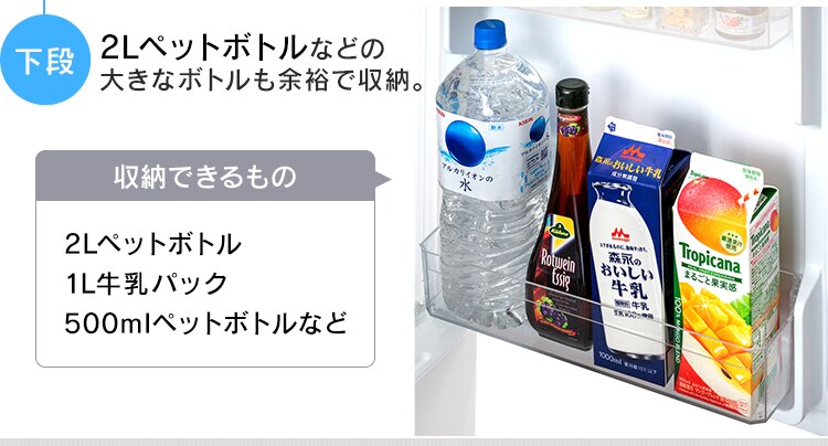 冷凍食品の買い置きにも便利なボトムフリーザータイプ。