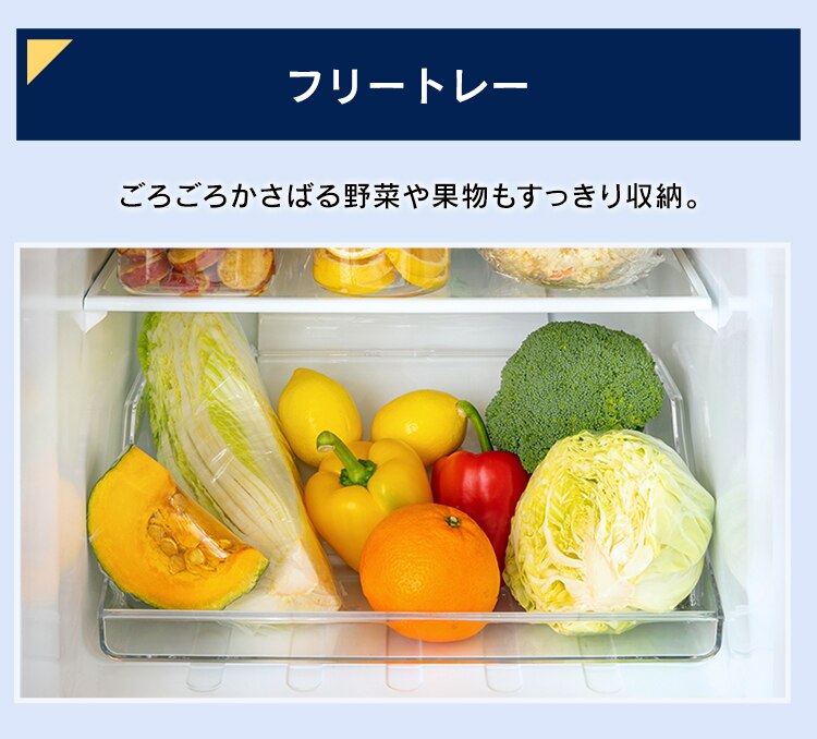 かさばる野菜や果物はフリートレーにすっきり収納。