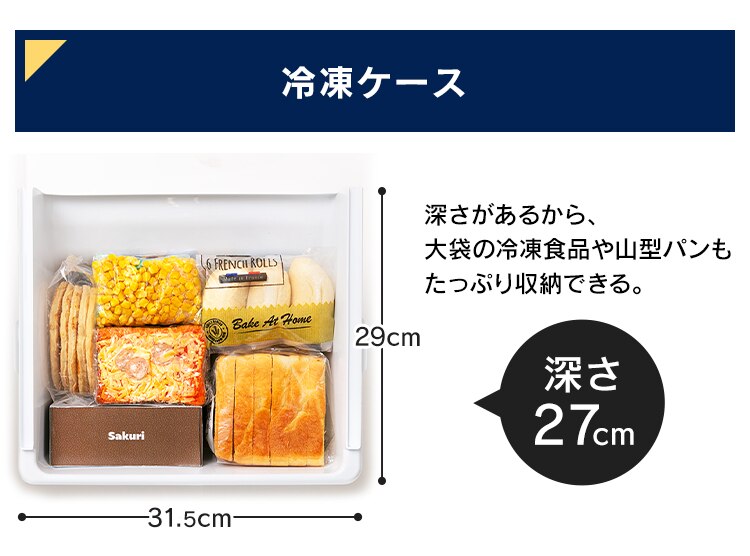 冷凍ケースは深さがあるので大袋の冷凍食品や山型パンもたっぷり収納できます。