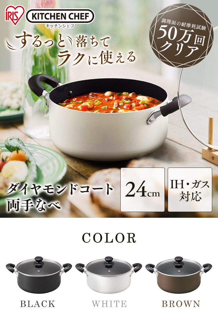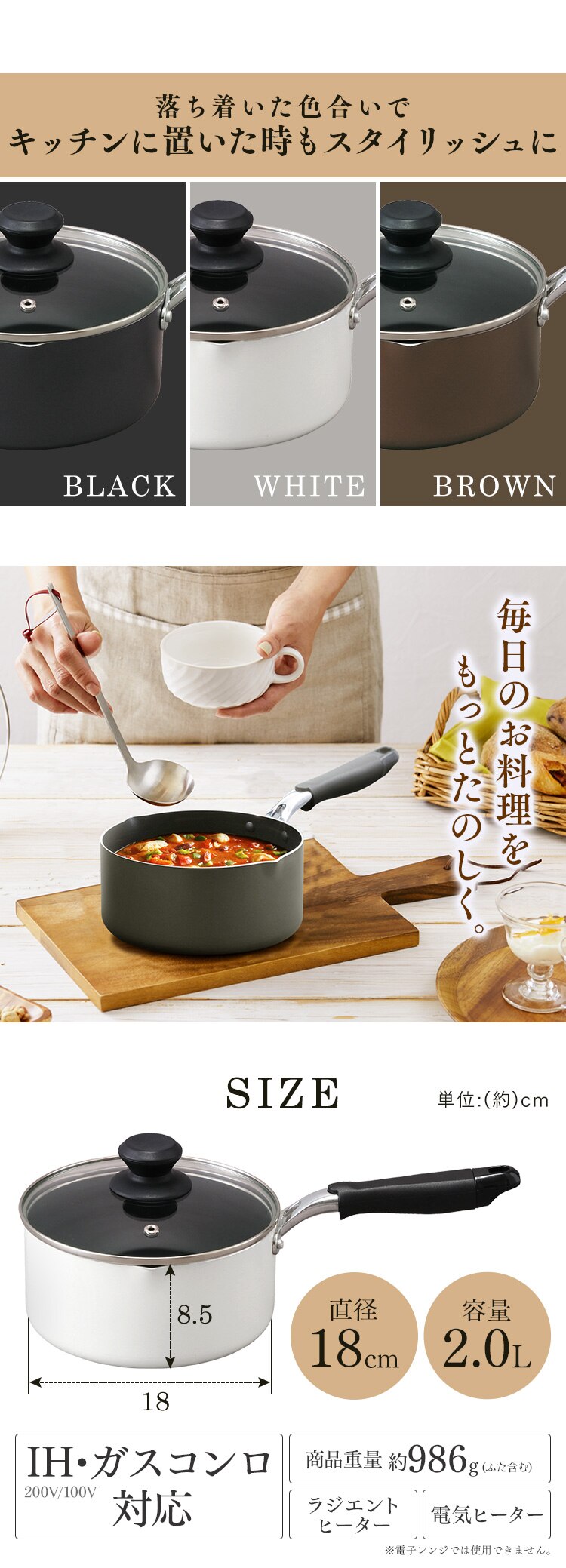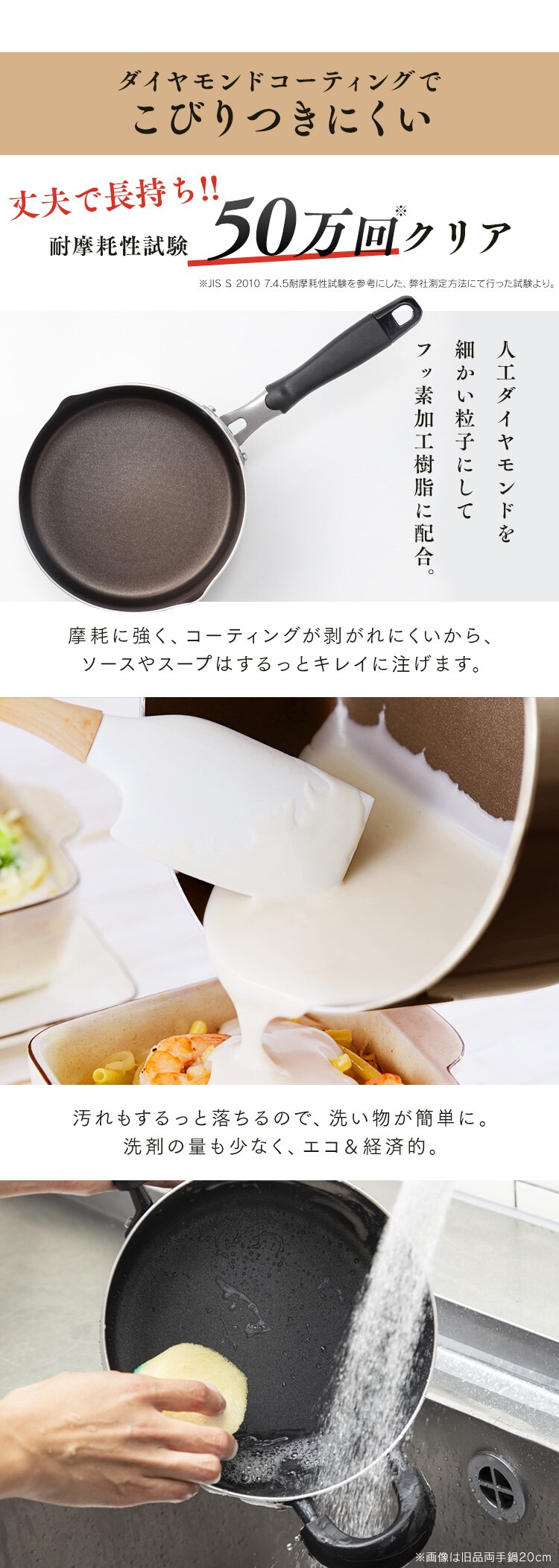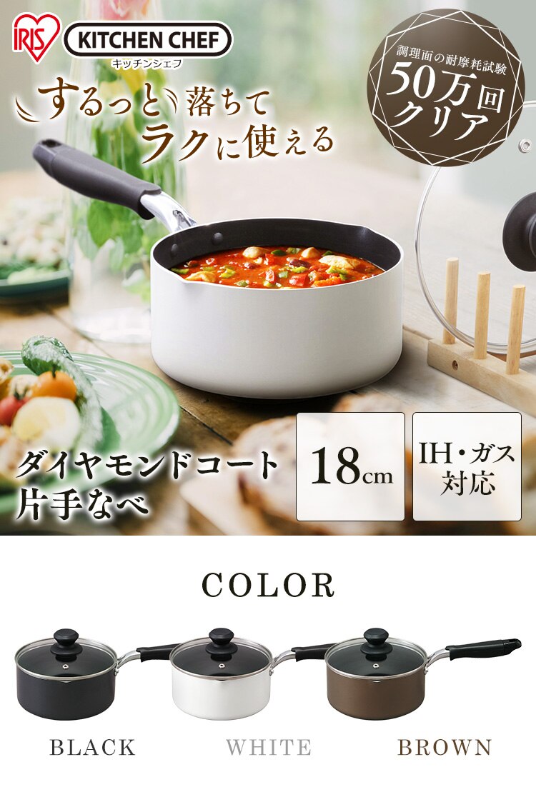 - 鍋 片手鍋 18cm IH/ガス ダイヤモンドコート DIS-P18 ホワイト