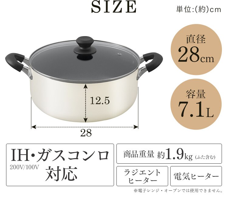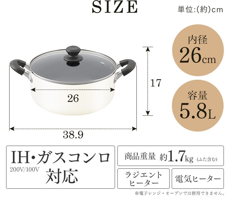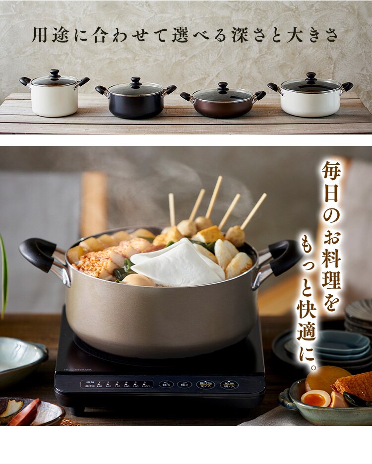 ●対応熱源:IH200V、IH100V、ガス火、ラジエントヒーター、その他の電気ヒーター