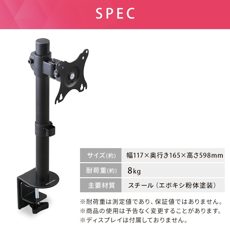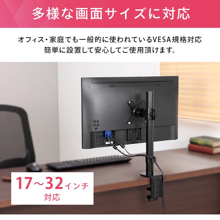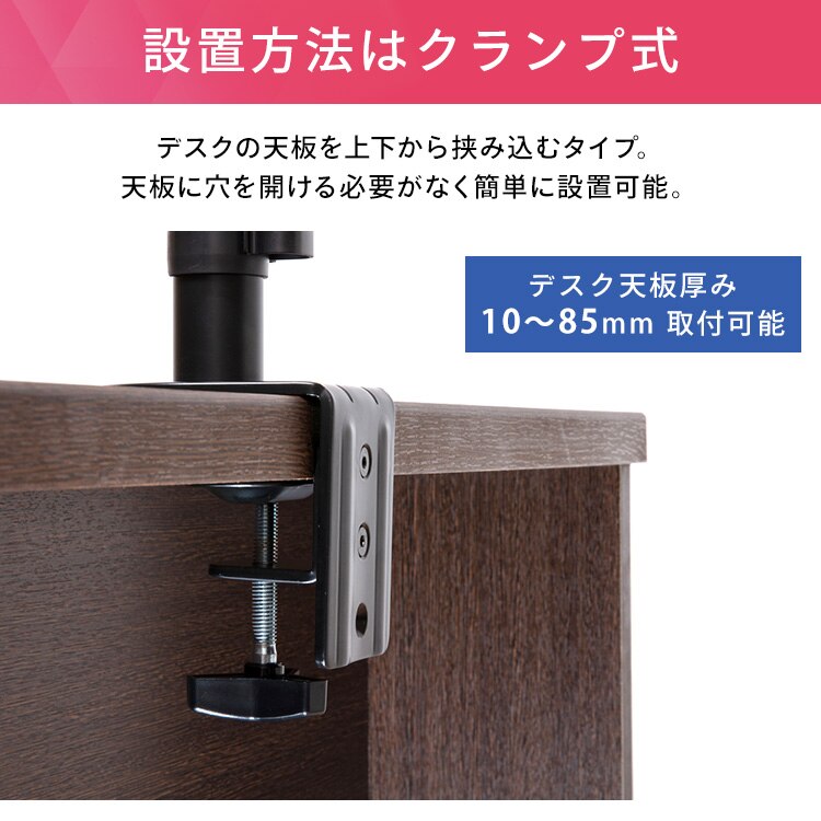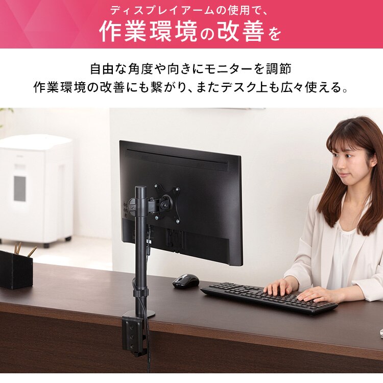 ディスプレイをデスクにしっかり固定できるディスプレイアームです。