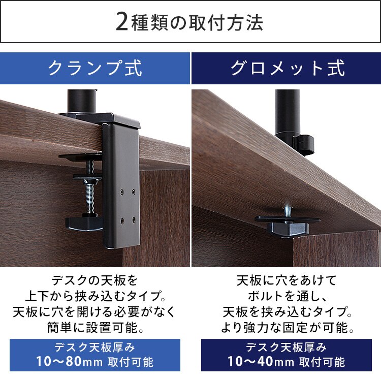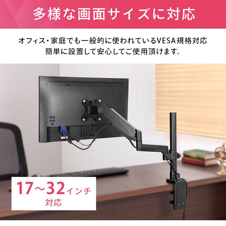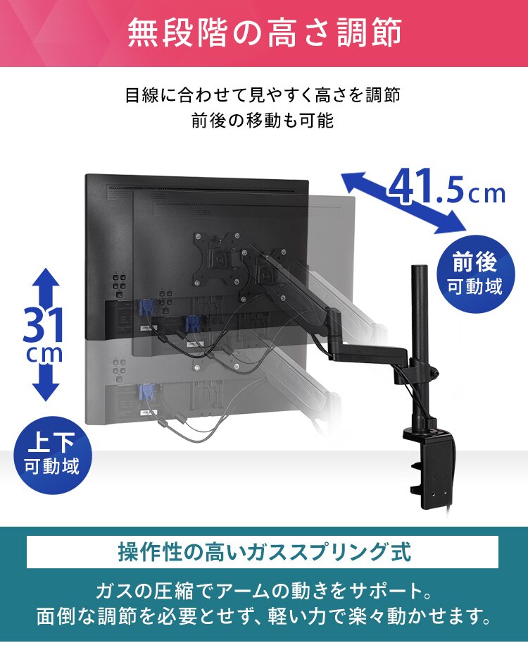 ディスプレイをデスクにしっかり固定できるディスプレイアームです。
