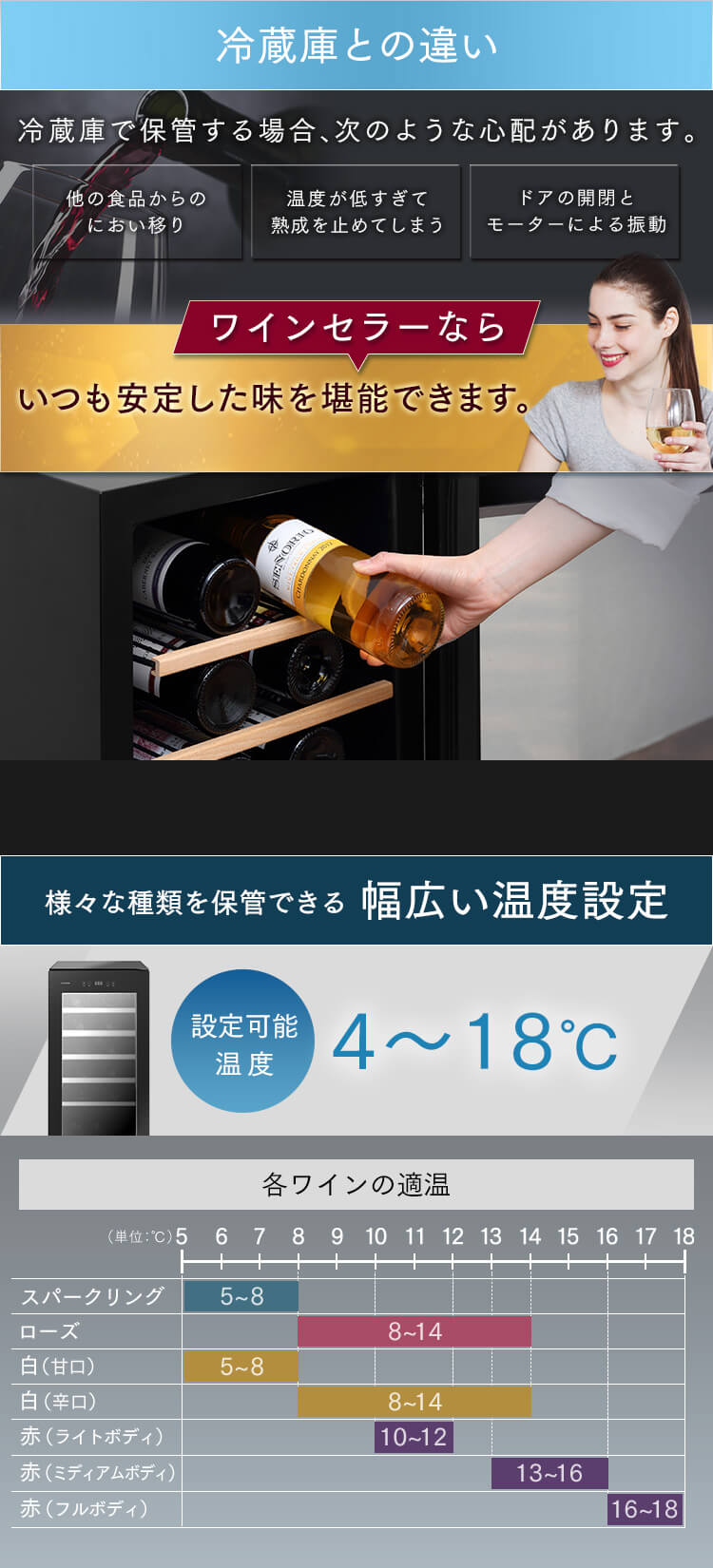 味や風味が変わりやすいワインを、良好な状態で自宅で簡単に保管。