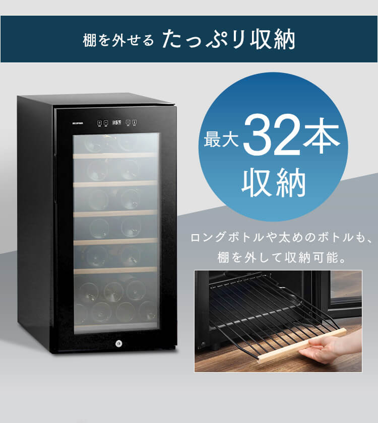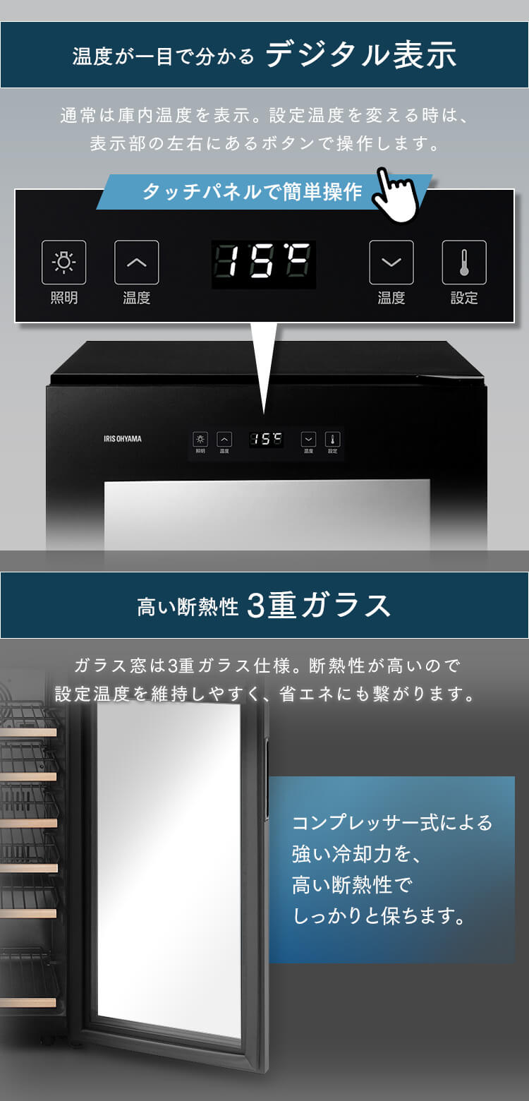 - ワインセラー 32本 83L コンプレッサー式 タッチパネル IWC-C321A-B