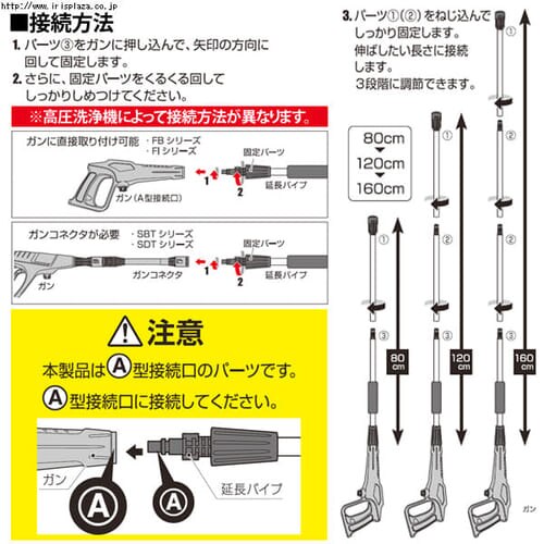 高圧洗浄機のガンに取りつけて使用する延長パイプです。