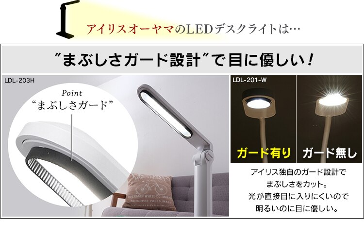 まぶしい光源から目を守るガード設計で