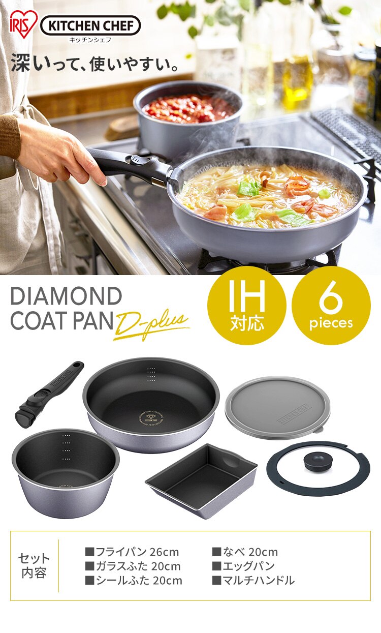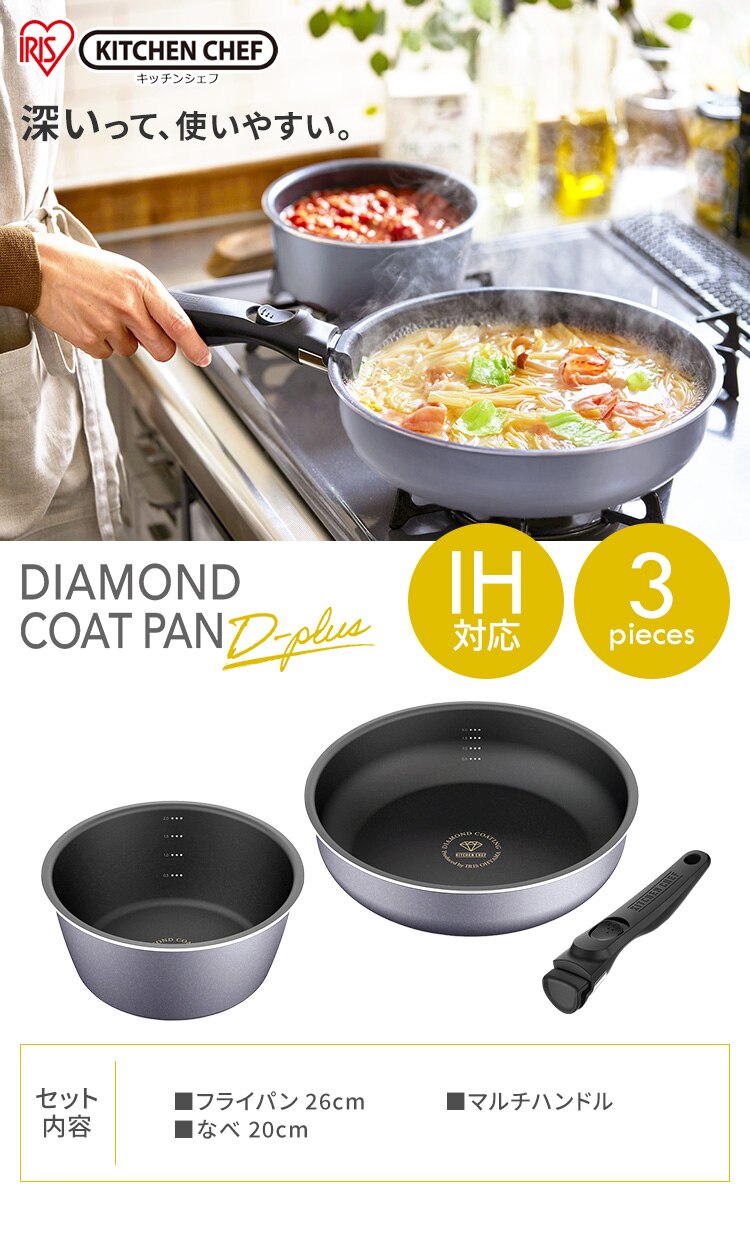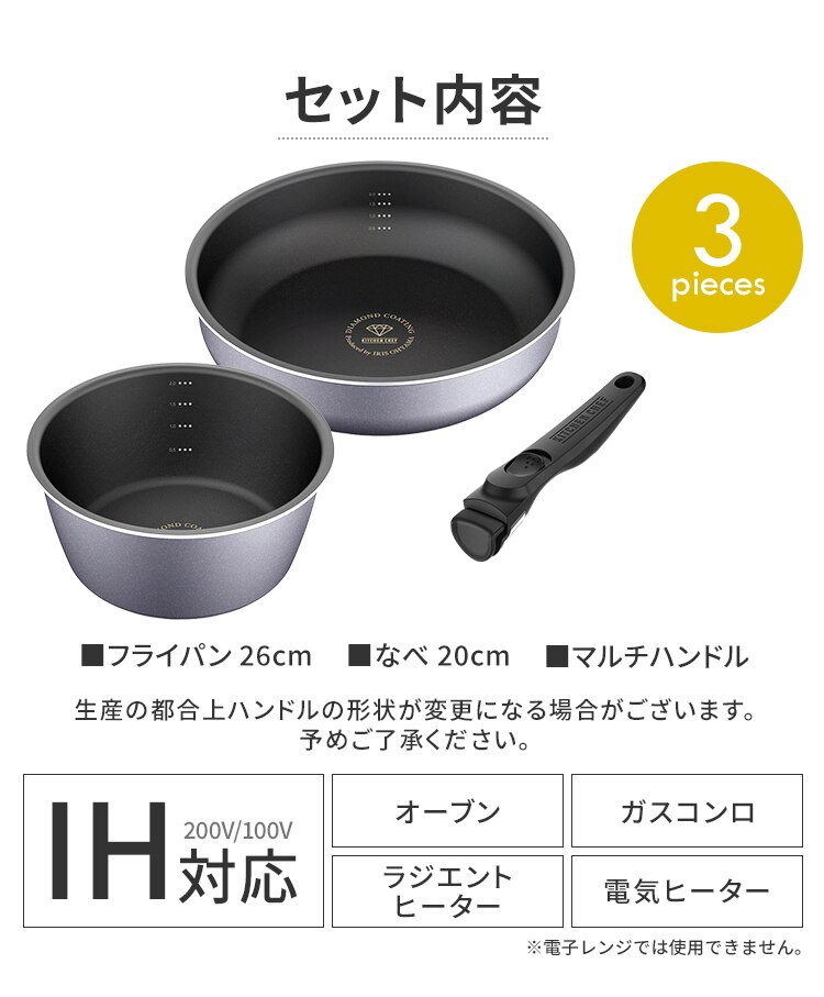 フライパン26cm、なべ20cm、マルチハンドル