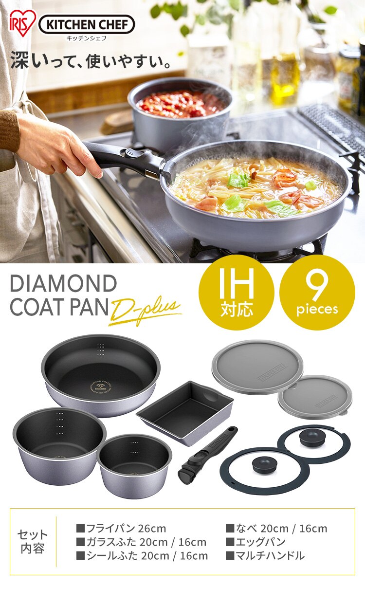 - フライパン 9点セット IH/ガス火対応 ダイヤモンドコートパンD-plus DCI-S9S スレートグレー