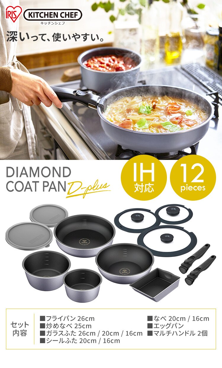 フライパン 9点セット IH/ガス火対応 ダイヤモンドコートパンD-plus DCI-S9S スレートグレー