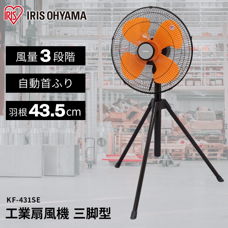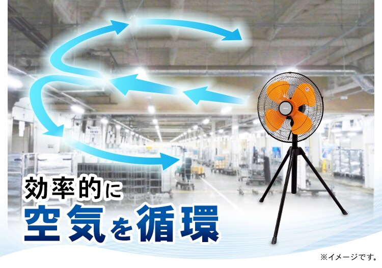 ベーシックな三脚型で広い空間で強力送風できる工業扇風機です。