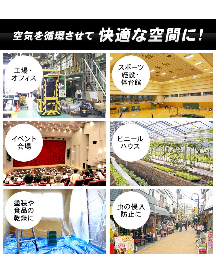 - 24畳にしっかり風を送ってくれます。夏場だけでなく冬場も暖房効率をよくするために使ってみようと思います。風切り音は大きいですが、他の工業扇風機よりは気になりません。
