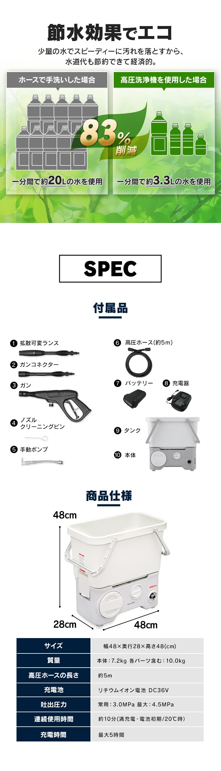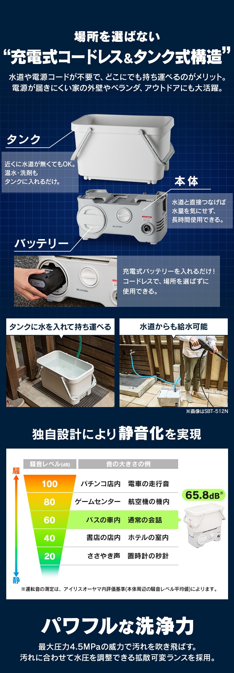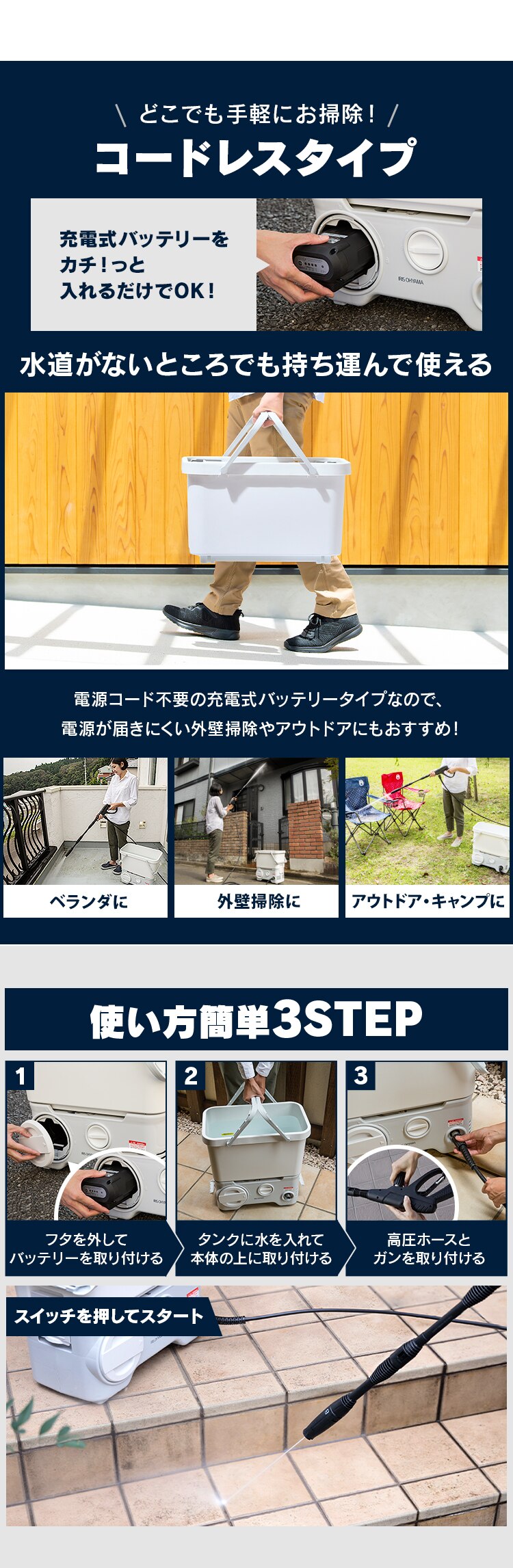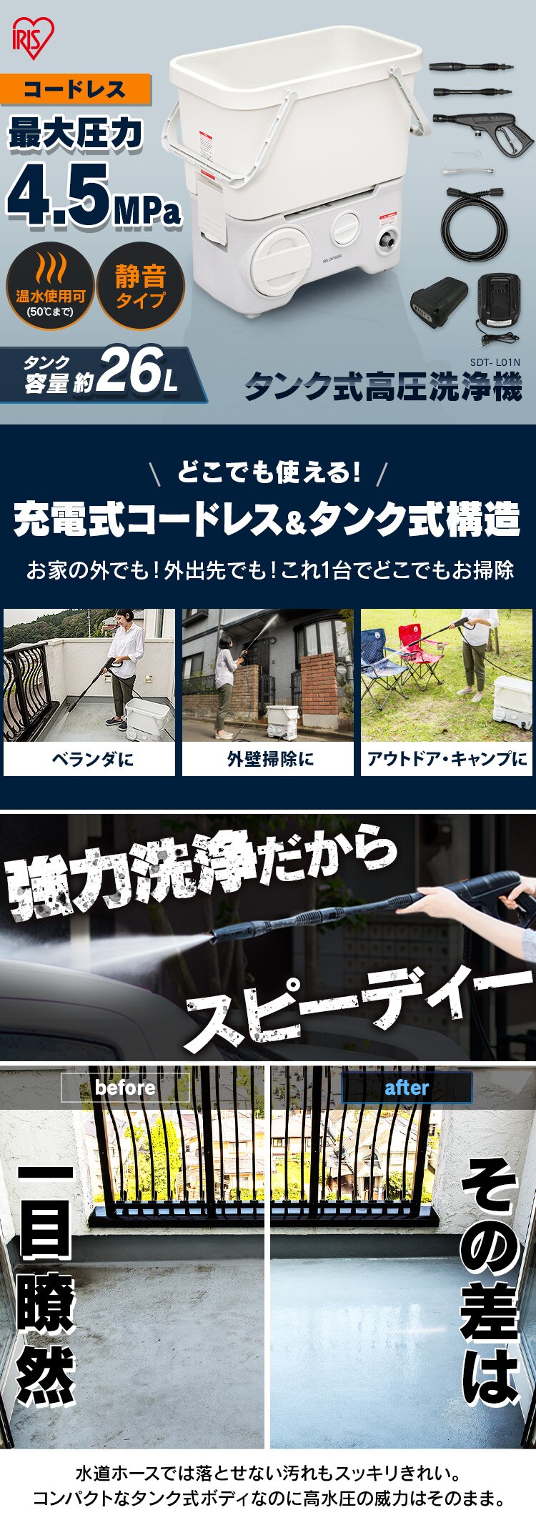 - 高圧洗浄機 タンク式 4.5MPa コードレス 温水洗浄可能 ホワイト SDT-L01N