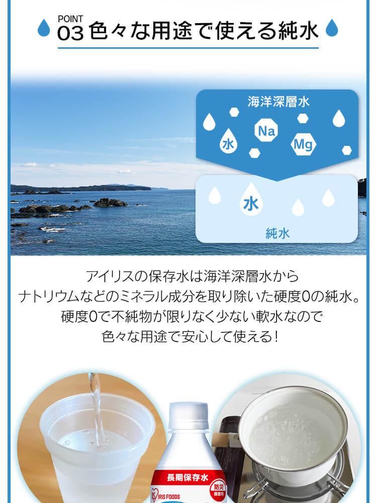 もしもに備えるアイリスの保存水。
