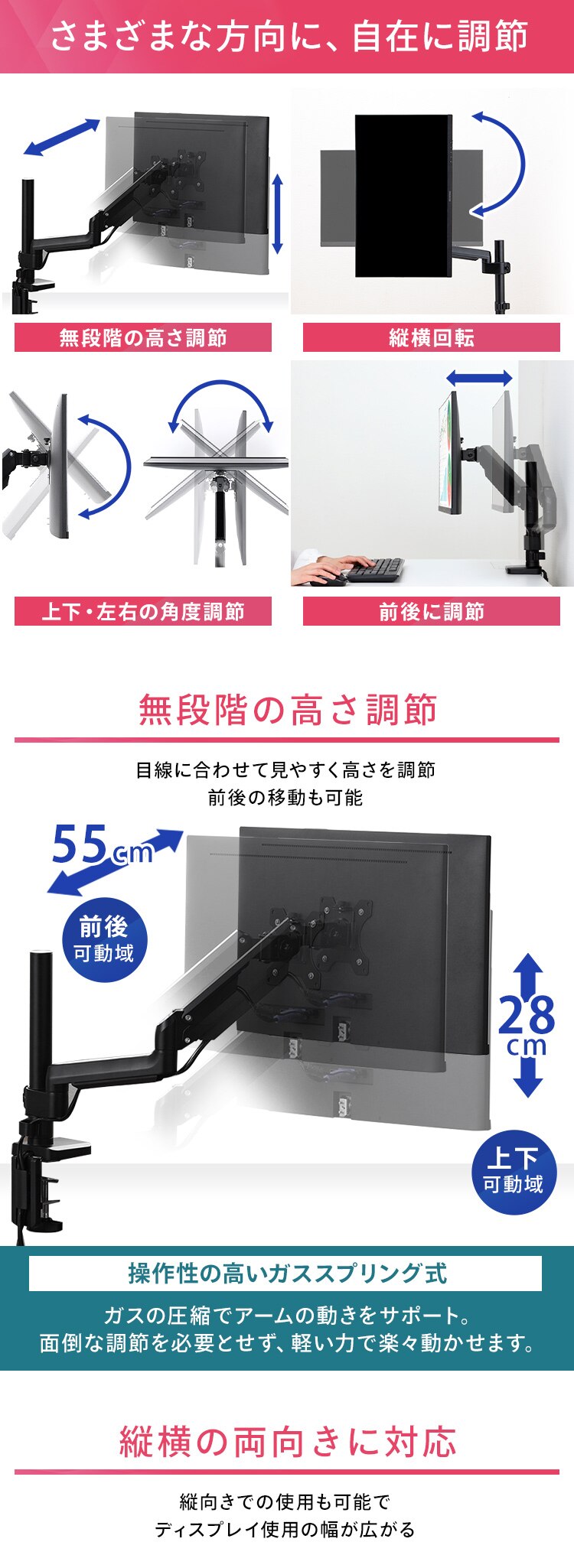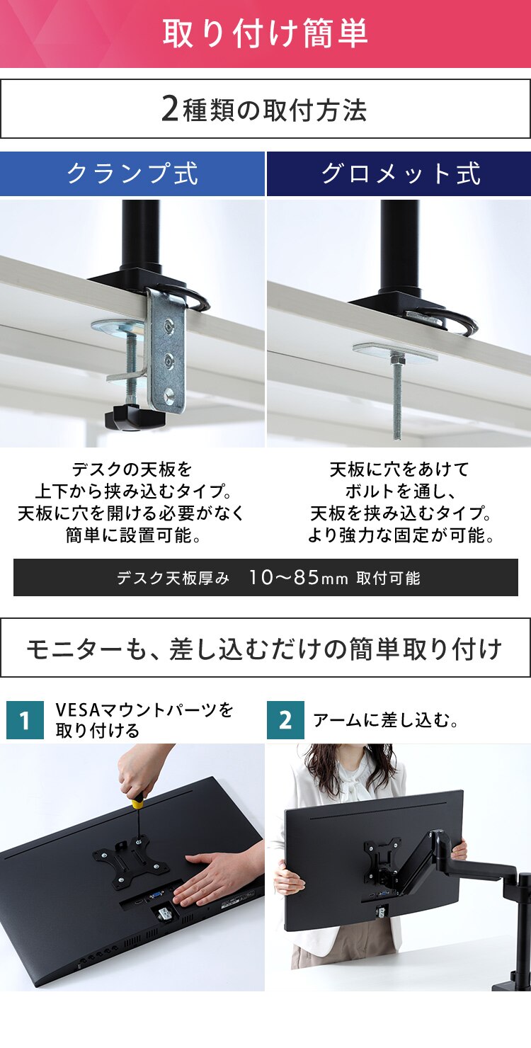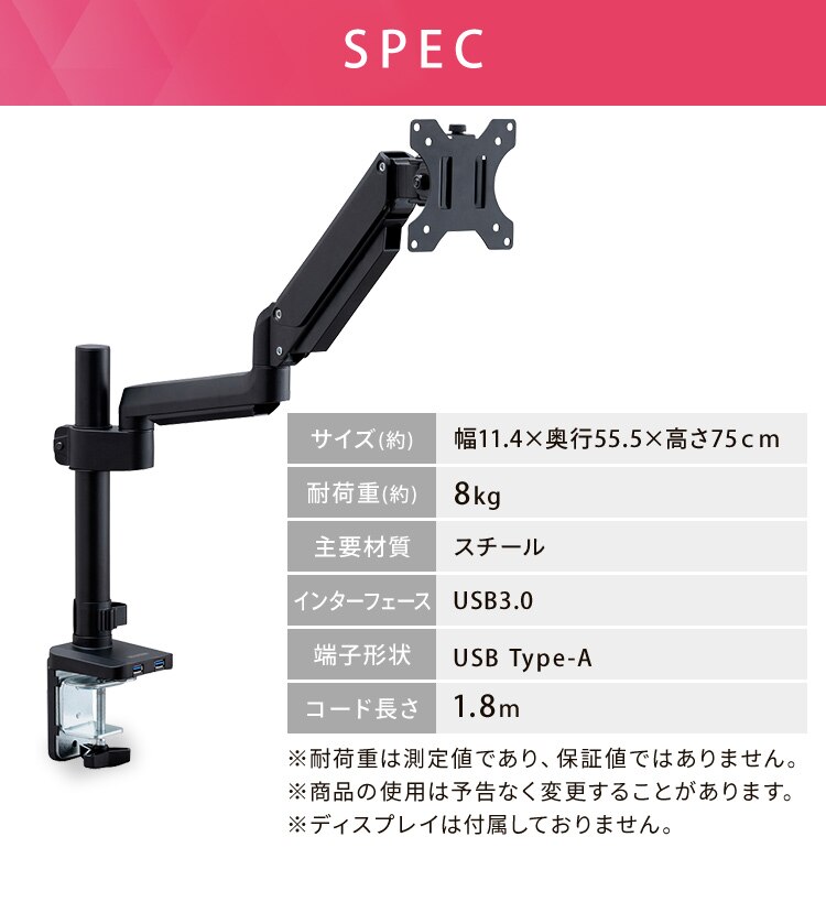ディスプレイアーム USBポート付き LUCA DA-G101U