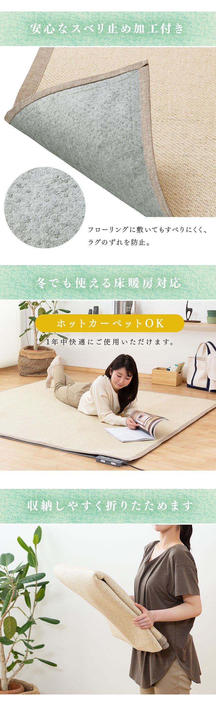 滑り止め加工によりフローリングに敷いてもすべりにくく、ラグがずれるのを防止。
