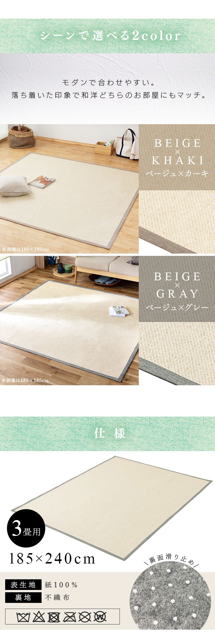 - サイズ : 185×240cm | カラー : ベージュ×カーキ 購入