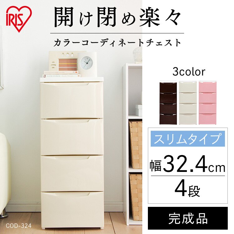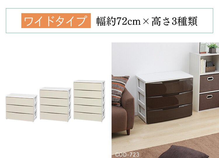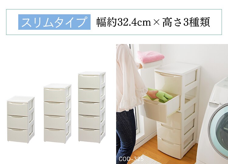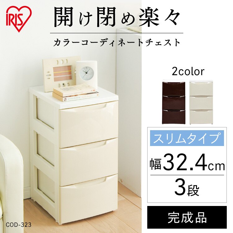 チェスト 3段 収納ボックス タンス カラーコーディネートチェスト スリム COD-323 ホワイト/アイボリー