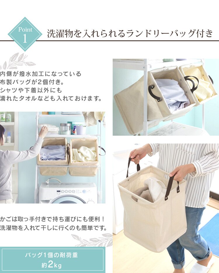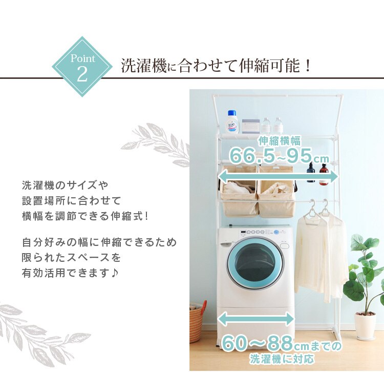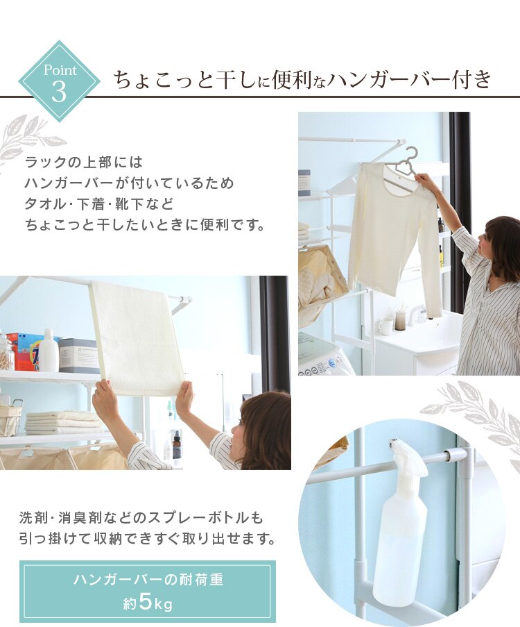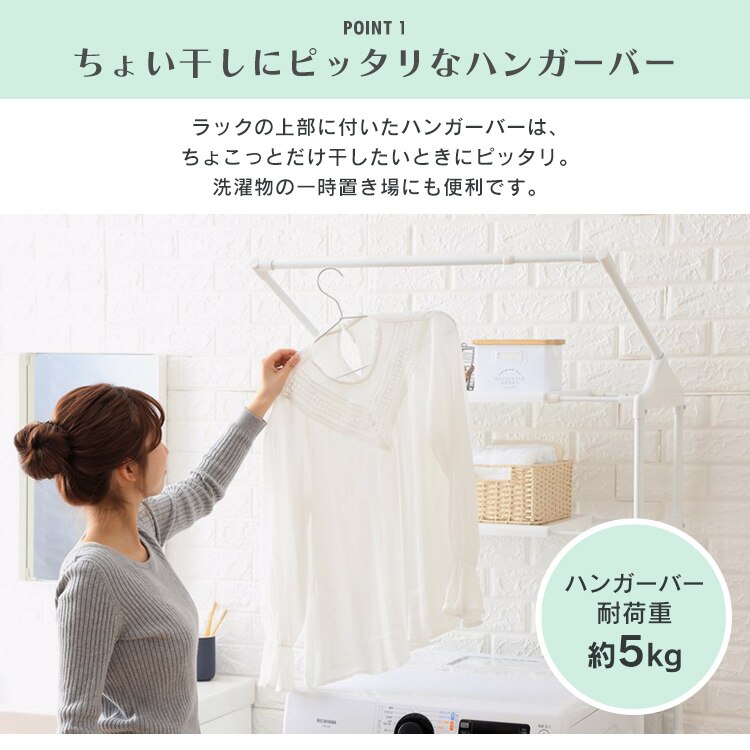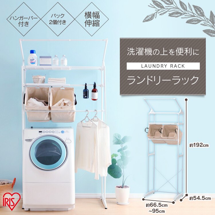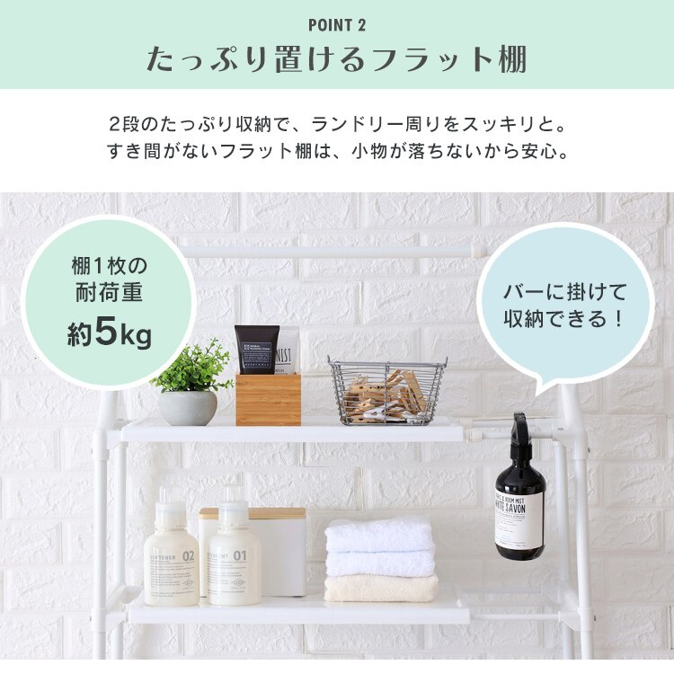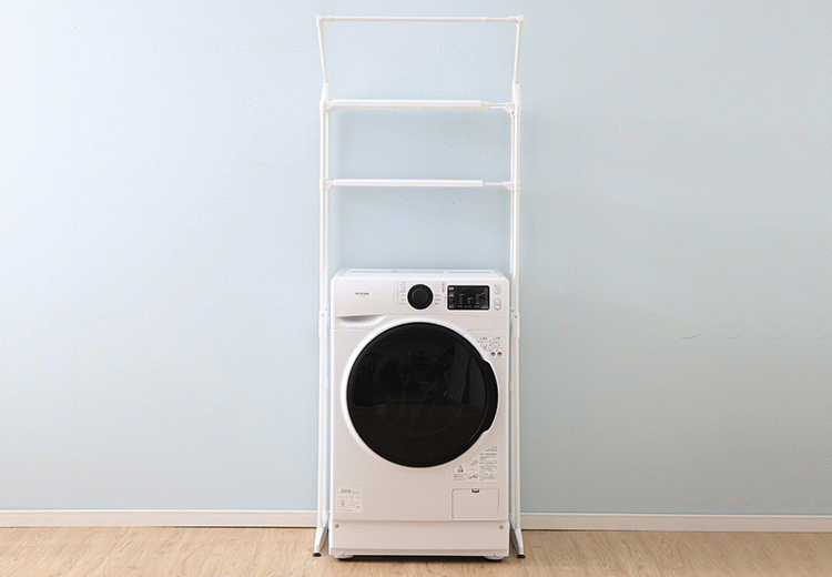 洗濯機の上部空間を有効活用できるランドリーラックです。