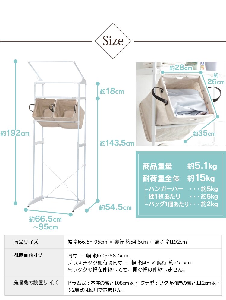 ●商品サイズ(cm):幅約66.5〜95×奥行き54.5×高さ約192